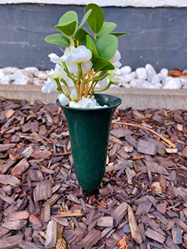 Mach das Grab deiner Lieben schöner mit diesen praktischen Grabvasen! Im 2er-Set in grün, aus robustem Kunststoff - hält lange und sieht trotzdem elegant aus. Mit Spikes zum einfachen in die Erde stecken - kein lästiges Graben nötig! Einfach Blumen rein, Spikes in die Erde drücken - fertig ist die schöne Grabbepflanzung. Perfekt für Gedenktage, Beerdigungen oder einfach zur dauerhaften Grabpflege. Die klassische konkave Form sieht edel aus und die Farbe verblasst nicht. Praktisch und schön zugleich - zeig deine Verbundenheit mit einer schönen Grabbepflanzung. Einfach in der Handhabung, aber wirkungsvoll im Ergebnis!