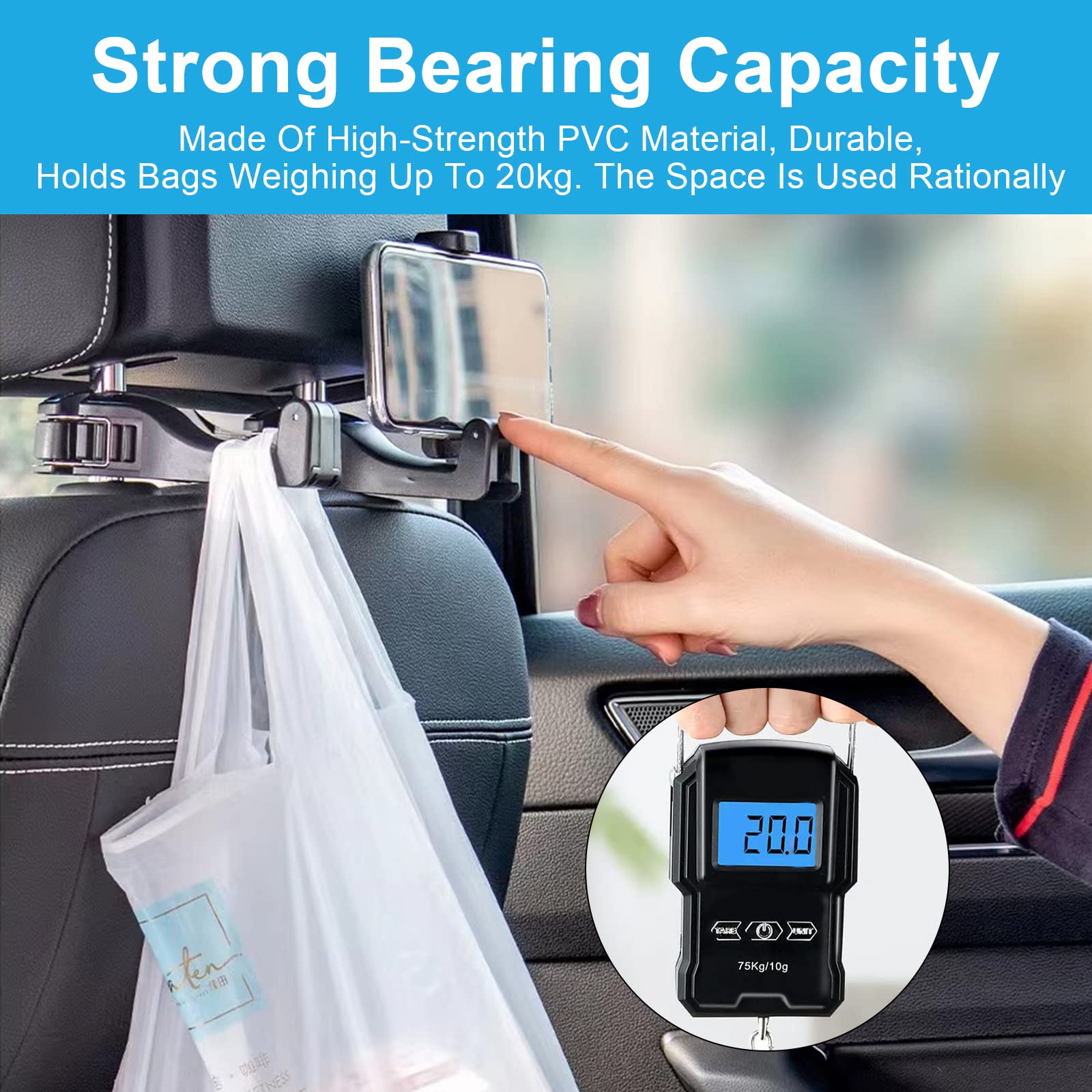 Super praktisch für dein Auto! Diese 2 Kopfstützenhaken organisieren den Rücksitz perfekt. Mit verstellbarer 4-Stufen-Sperre für alle Fahrzeuge. Handyhalter für Filme auf langen Fahrten. Tragkraft bis 5kg pro Haken - für Taschen, Jacken, Einkäufe. 360° drehbar und klappbar. Aus hochwertigem ABS - kratzt die Kopfstangen nicht. Einfache Montage ohne Werkzeug. Mach deine Autofahrten ordentlicher und entspannter!