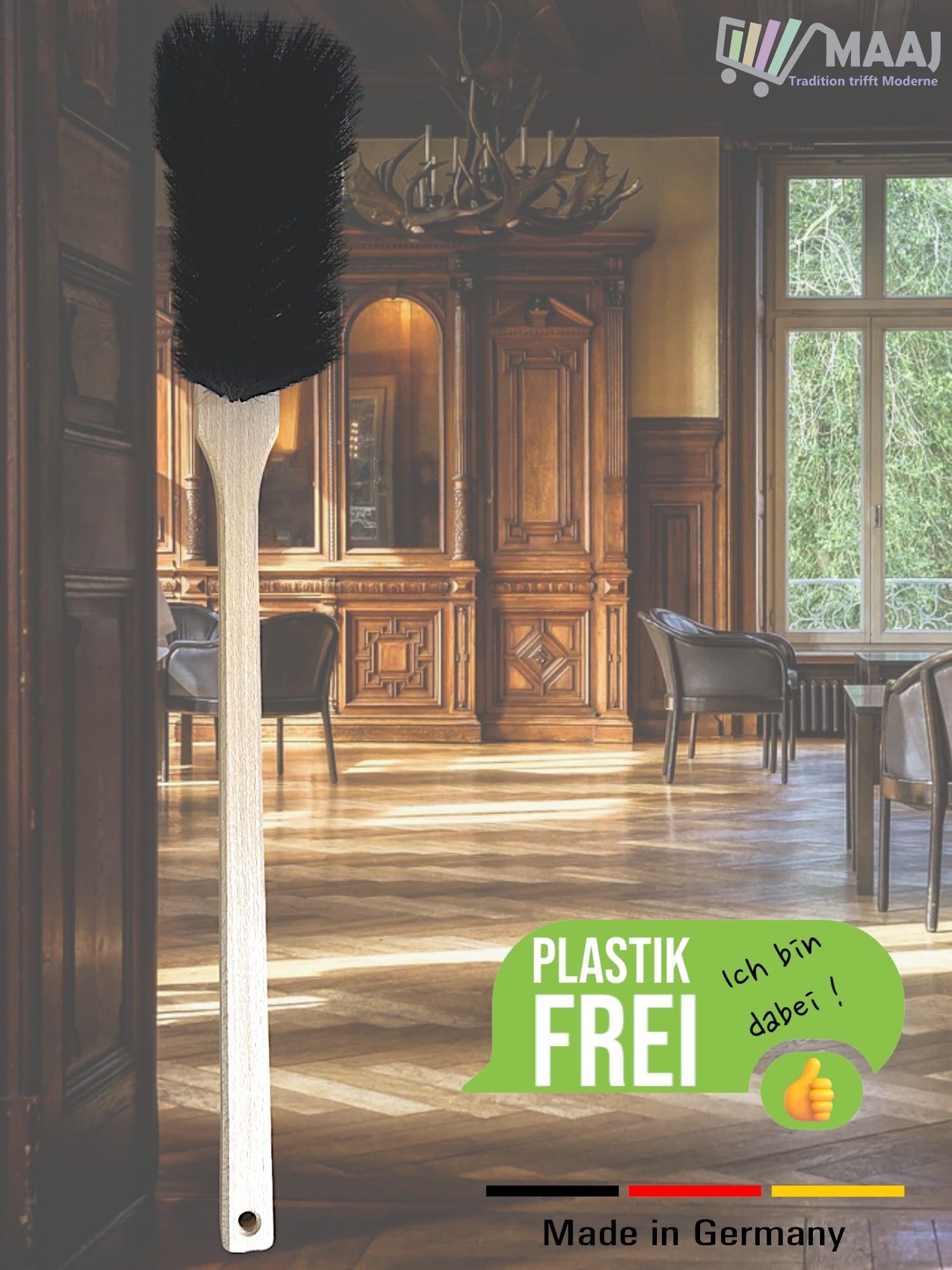 2x MAAJ Langstiel Handfeger 60cm - Elaston Borsten Made In Germany