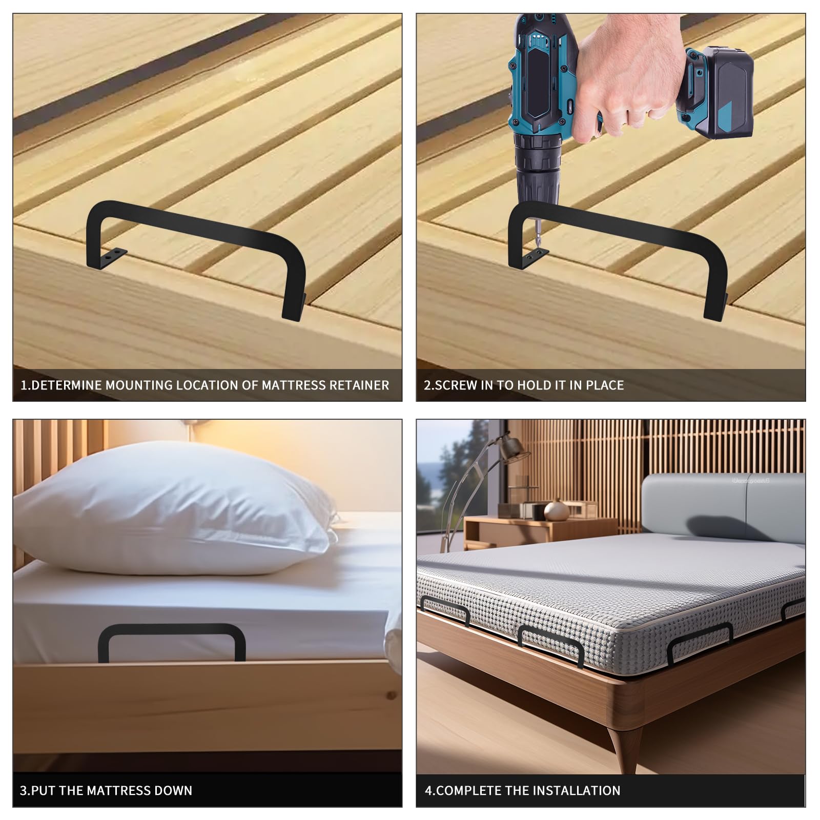 Schluss mit verrutschter Matratze! Diese praktischen Haltestangen aus robustem Stahl halten deine Matratze sicher an Ort und Stelle. Maße: 26,5 x 8 x 8,9 cm - passen für die meisten Betten. Einfach mit den beiliegenden Schrauben am Bettrahmen befestigen - geht fix mit Akkuschrauber. Die polierten Schraubenköpfe schützen deine Matratze vor Kratzern. Super für verstellbare Betten, Wohnmobile oder normale Holzbetten. Endlich durchschlafen ohne morgens die Matratze wieder zurechtrücken zu müssen! Schwarz lackiert - sieht unauffällig aus und rostet nicht. Im Set: 2 Haltestangen + 8 Schrauben.