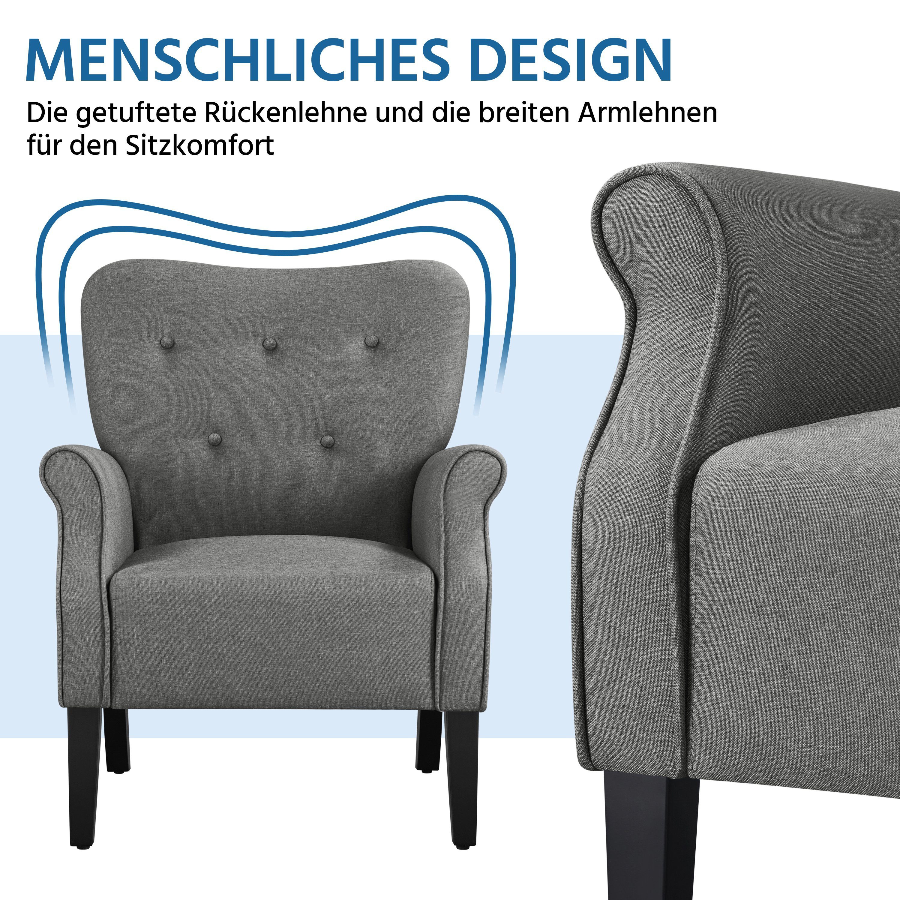 Entspannung pur! Diese beiden grauen Relaxsessel von Yaheetech sind ein Traum für dein Wohnzimmer. Mit massiven Holzbeinen und robustem Rahmen sind sie super stabil und halten bis zu 136kg aus - SGS-geprüft und sicher! Die dick gepolsterten Sitzkissen mit festen Federn sorgen für himmlischen Sitzkomfort. Die hohe Rückenlehne stützt deinen Rücken perfekt, während die geschwungenen Armlehnen sich angenehm an deine Arme schmiegen. Aus weichem, hochwertigem Stoff der zum Relaxen einlädt. Mit 20kg pro Sessel sind sie leicht genug zum Verschieben, aber dennoch standfest. Die 4 Gummifüße schützen deine Böden vor Kratzern. Perfekt fürs Wohnzimmer, Schlafzimmer, Home-Office oder sogar den Balkon. Ob zum Fernsehen, Lesen oder einfach nur zum Ausruhen - diese Sessel werden deine neuen Lieblingsplätze. Das elegante Design in Grau passt zu fast jedem Einrichtungsstil. Hol dir jetzt das Sessel-Paar und genieße gemütliche Stunden in bester Qualität!