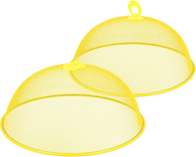 Schütze dein Essen vor lästigen Fliegen mit diesen praktischen Abdeckhauben! Im 2er-Pack für verschiedene Speisen gleichzeitig. Aus robustem Eisen mit feinem Metallgewebe - Luft zirkuliert, aber Fliegen bleiben draußen! Der praktische Griff macht das Anheben super einfach. Mit 27cm Durchmesser perfekt für Teller, Schüsseln und Platten. Ideal für Gartenpartys, Picknicks, Camping oder den täglichen Gebrauch in der Küche. Einfach über das Essen stülpen und es bleibt frisch und geschützt! Die schwarze Farbe sieht dazu noch stylisch aus. Damit genießt du dein Essen in Ruhe - ohne ungebetene Gäste! Einfach abwaschen und immer wieder verwenden! Praktischer geht's nicht!