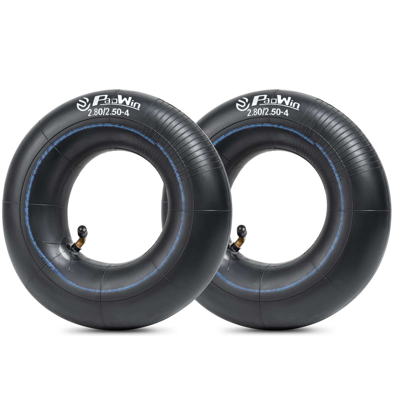 Platten? War gestern! Diese beiden hochwertigen Ersatzschläuche passen perfekt für 2,80/2,50-4 Zoll Reifen und machen deine Schubkarre, deinen Gartenanhänger oder Rasenmäher wieder flott. Aus robustem Butylkautschuk gefertigt, der Luftverluste minimiert und extrem langlebig ist. Das TR87-Ventil mit gebogenem Schaft ist super praktisch - kein lästiges Bücken mehr beim Aufpumpen! Die gummi beschichtete Ventilbasis verhindert, dass Sand und Dreck eindringen. Kompatibel mit fast allen 4-Zoll-Felgen: Ob Schubkarren, Sackkarren, Gartenwagen, Mäher oder sogar kleinen Go-Karts - hier passt es! Einfache Montage: Alten Schlauch raus, neuen rein - fertig! Im 2er-Pack sparst du dir den nächsten Notfall. Für den privaten Garten genau richtig, aber auch robust genug für professionellen Einsatz. Nie wieder Ärger mit platten Reifen - mit diesen Schläuchen bist du bestens ausgerüstet!
