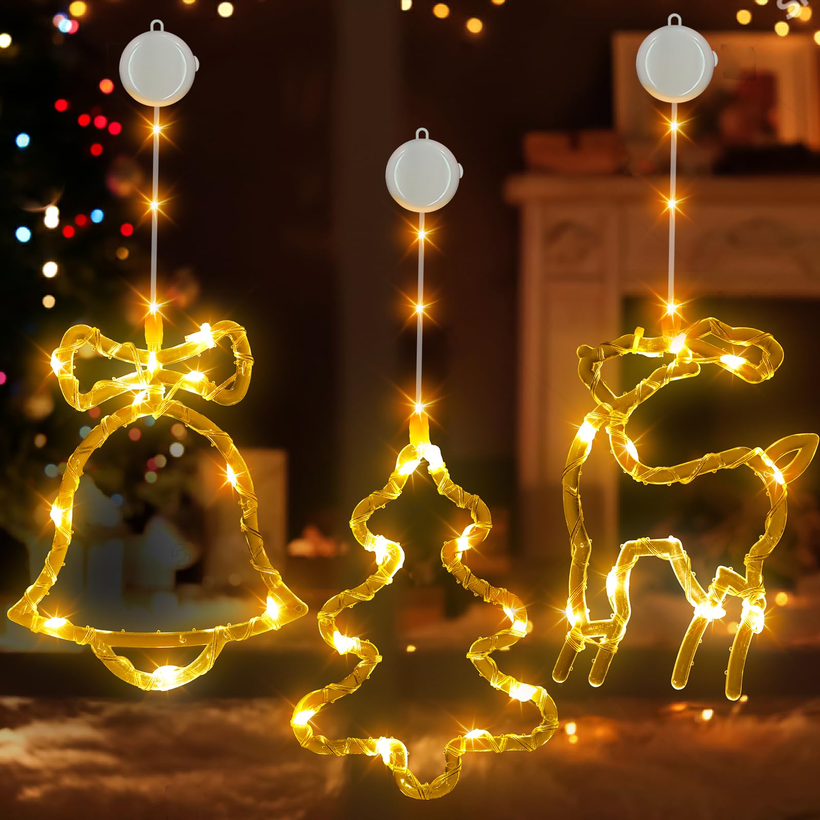 Weihnachtsstimmung garantiert! Dieses Set mit 2x 30 LED Lichterketten bringt Festtagsstimmung in dein Zuhause. Mit süßen Motiven wie Sternen, Glocken und Weihnachtsbäumen. Batteriebetrieben (3x AAA, nicht enthalten) - super flexibel ohne störende Kabel. Der praktische Timer schaltet nach 6 Stunden automatisch ab und nach 18 Stunden wieder ein. Zwei Modi: Dauerlicht oder fröhliches Blinken. Einfach mit den starken Saugnäpfen und Klebehaken an Fenstern oder Wänden befestigen - kein Bohren nötig. Perfekt für Weihnachten, Geburtstage oder Partys. Mach dein Zuhause damit richtig gemütlich!