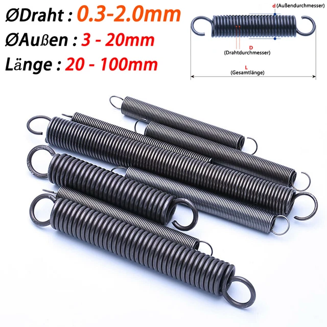 Diese beiden Zugfedern aus Federstahl sind echte Alleskönner für deine mechanischen Projekte! Mit 2,0mm Drahtdurchmesser, 17mm Außendurchmesser und 150mm freier Länge (gesamt 160mm mit Haken) sind sie super vielseitig einsetzbar. Die doppelten S-förmigen Haken bieten sicheren Halt und einfache Montage. Aus hochwertigem Federstahl gefertigt, sind sie extrem elastisch und langlebig - die halten auch bei Dauerbelastung problemlos durch. Ob für Maschinenbau, Modellbau, Fahrzeuge oder spezielle Konstruktionen - diese Federn liefern zuverlässige Zugkraft. Die Qualität ist top, die Maße genau und die Oberfläche sauber verarbeitet. Einfach die passende Größe für dein Projekt auswählen und loslegen! Für alle, die stabile und zuverlässige Zugfedern benötigen - hier wirst du fündig!