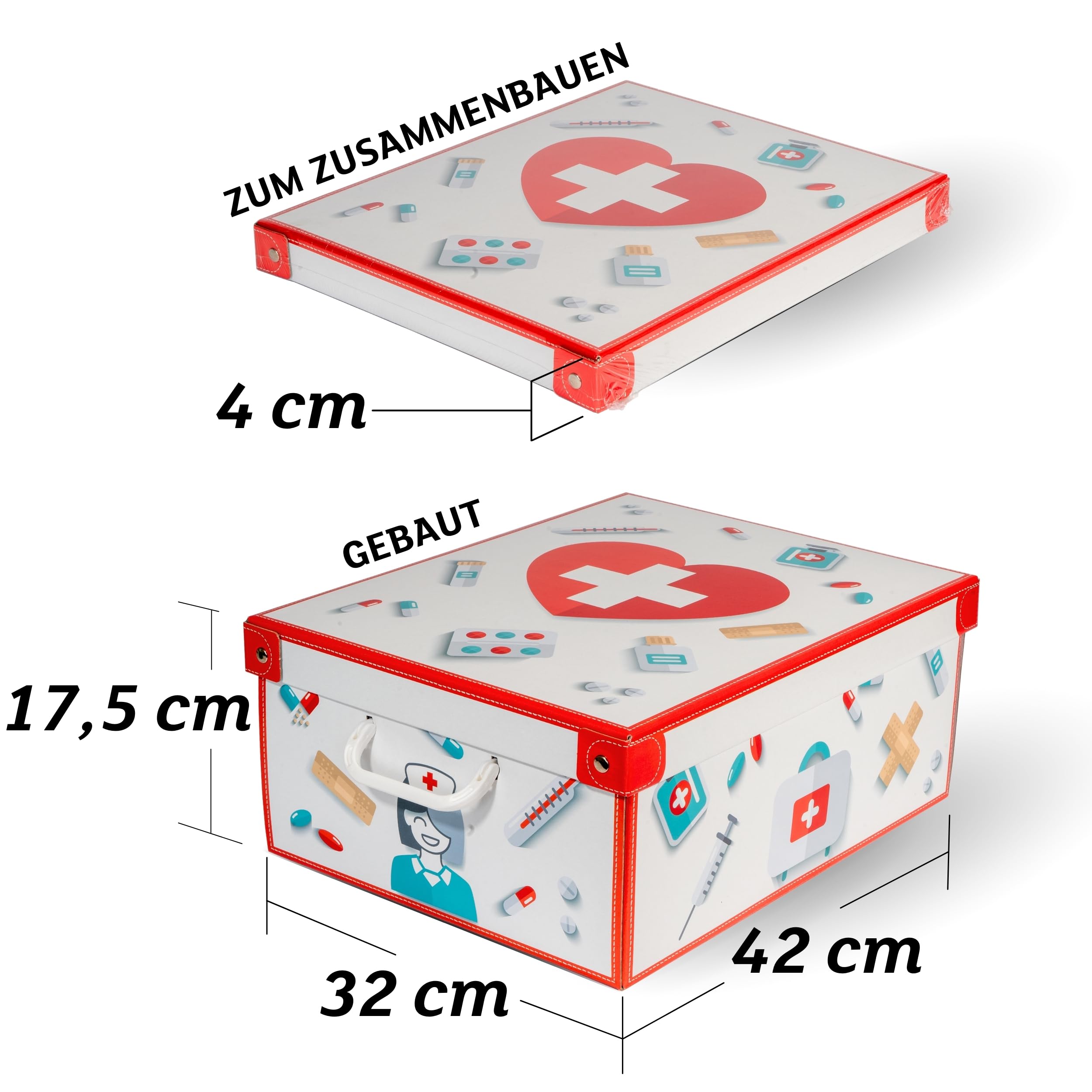 Ordnung im Medizinschrank war noch nie so einfach! Diese praktische Medikamentenbox mit drei getrennten Ebenen bringt System in deine Hausapotheke. Ob Schmerztabletten, Pflaster, Fieberthermometer oder Salben - alles hat jetzt seinen festen Platz und ist blitzschnell griffbereit. Die Box ist aus hochwertigem Kunststoff, der keine Gerüche annimmt und super leicht zu reinigen ist. Mit den robusten Schnappverschlüssen bleibt alles sicher verschlossen - selbst wenn du die Box mal mitnimmst. Vom integrierten Tragegriff profitierst du besonders auf Reisen, beim Camping oder wenn du Medikamente mal in einen anderen Raum bringen musst. Die Maße von 34x22x25cm sind ideal für Schränke oder Regale. Und das Tolle: Die Box ist nicht nur für Medikamente super, sondern auch für Erste-Hilfe-Utensilien, Pflegeprodukte oder sogar Kosmetik. Alles bleibt sauber, trocken und übersichtlich. Nie wieder suchen - immer alles sofort parat! Perfekt für Familien, Alleinlebende oder alle, die Wert auf Organisation und Hygiene legen. Deine Hausapotheke wird dir diese Box danken!