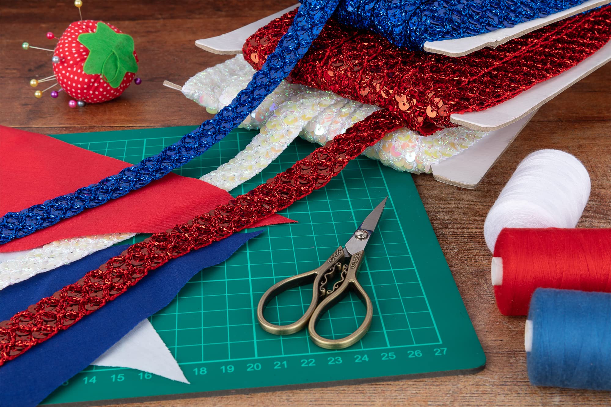 Wow, dieses Strassband von Hobbspring ist genau das Richtige für alle Bastelfans! Du kriegst insgesamt 15 Meter Band - aufgeteilt in 3 verschiedene Farben mit je 5 Metern. Jedes Band ist etwa 15mm breit und hat diese coolen metallischen Pailletten in Wellenform. Das Polyester-Material ist superleicht und franst kaum aus - perfekt zum Schneiden, Binden oder Kleben. Egal ob du Geschenke verpackst, Scrapbooking machst, Blumen schmückst oder Partydeko bastelst - dieses Band gibt allem einen glitzernden Touch! Die verschiedenen Farben lassen sich super kombinieren und machen jede Bastelarbeit zum Hingucker. Das Beste: Du musst kein Profi sein, um damit tolle Ergebnisse zu erzielen. Einfach deiner Kreativität freien Lauf lassen und mit dem Strassband wunderschöne Accessoires, Kleidung oder Deko-Elemente gestalten. Perfekt für DIY-Projekte, Näh-Arbeiten oder um einfach mal was Neues auszuprobieren!
