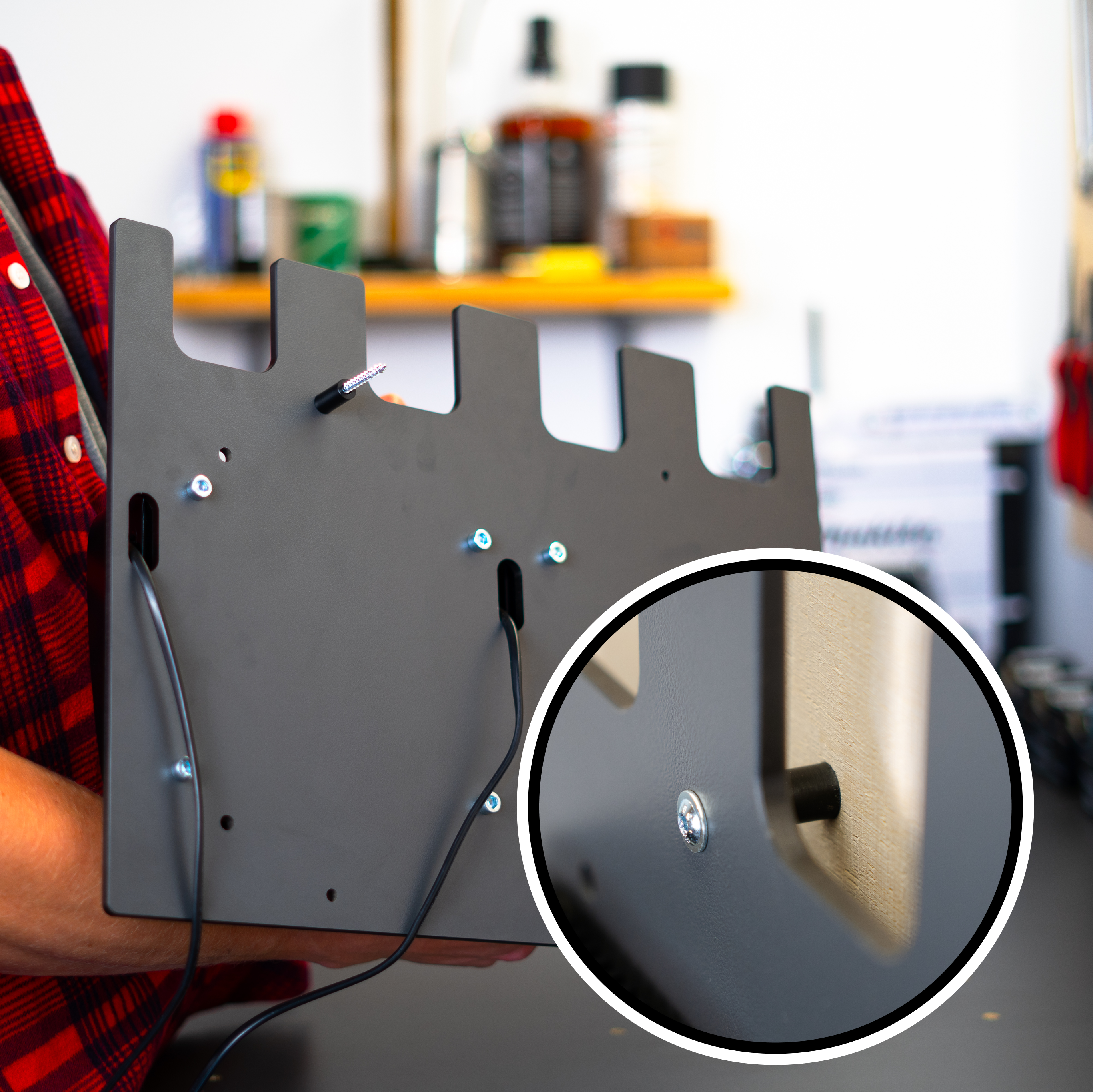 Endlich Ordnung in der Werkstatt! Diese praktische Wandhalterung für Makita Akkus und Ladegeräte hält alles griffbereit. Platz für 4 Akkus (14,4V/18V), das Ladegerät DC18RC/DC18RD und sogar zwei Bohrmaschinen. Aus robustem Stahlblech, 6 mm dick und rostbeständig. Mit vorgebohrten Löchern und Montagematerial - einfach an die Wand schrauben und fertig! Das hohle Design sorgt für gute Belüftung der Ladegeräte. Perfekt für Garage, Werkstatt oder Hobbyraum. Nie wieder suchen - alles hat seinen festen Platz!