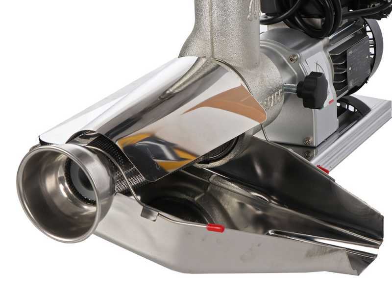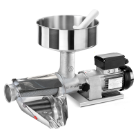 So macht Tomatensauce Spaß! Die TRE SPADE elektrische Tomatenpresse ist ein echter Profi für zu Hause. Mit 300W Motor und 160 Umdrehungen pro Minute presst sie Tomaten, Obst und Gemüse im Nu. Das Gehäuse aus verzinntem Gusseisen ist super robust, Trichter und Filter aus Edelstahl rostfrei. Der Propeller aus lebensmittelechtem Kunstharz ist schonend zu den Lebensmitteln. Einfach Tomaten rein, Knopf drücken und fertig ist das feinste Püree ohne Kerne und Schale. Leicht zu demontieren und zu reinigen - in wenigen Minuten blitzblank. Perfekt für Saucen, Suppen, Marmeladen oder Babynahrung. Mit 9kg Gewicht steht sie stabil auf der Arbeitsplatte. Seit Generationen bewährt - italienische Qualität die begeistert!