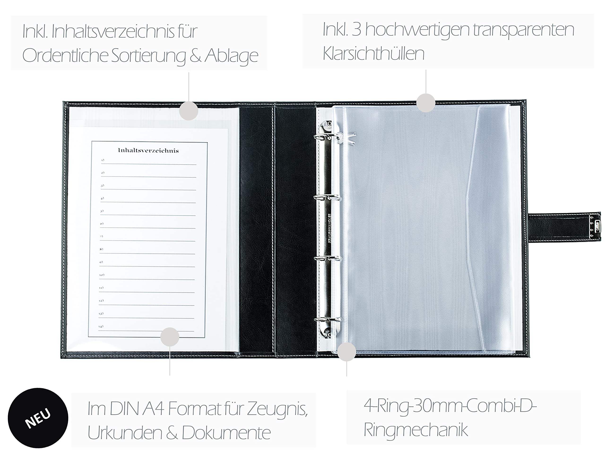 Das beste Feature: Die Oberfläche ist aus wasserdichtem PVC! Verschütteter Kaffee? Kein Problem - einfach abwischen und schon ist der Ordner wieder sauber. Und er kratzt nicht so leicht, bleibt also lange schön.