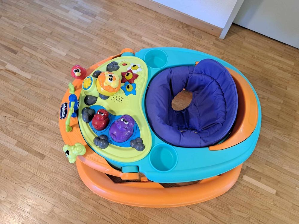 So macht Laufen lernen Spaß! Dieser 3-in-1 Lauflernwagen begleitet dein Baby von den ersten Stehversuchen bis zu den ersten Schritten. Als Laufhilfe, Spieltisch oder separates Aktivitätscenter nutzbar. Die dreieckige Form gibt extra Stabilität, und die einstellbaren Räder kontrollieren die Geschwindigkeit - super sicher also! Das Aktivitätscenter hat coole Features: drehbare Zähne, Musikspielzeug (Batterien nicht dabei) und Wurfspiele. Aus stabilem Kunststoff und platzsparend zu verstauen. Ab 6 Monaten geeignet - ein Begleiter für die wichtigste Entwicklungsphase deines Kindes! Fördert Motorik, Gleichgewichtssinn und macht einfach riesig Spaß. Das perfekte Geschenk für werdende Eltern!