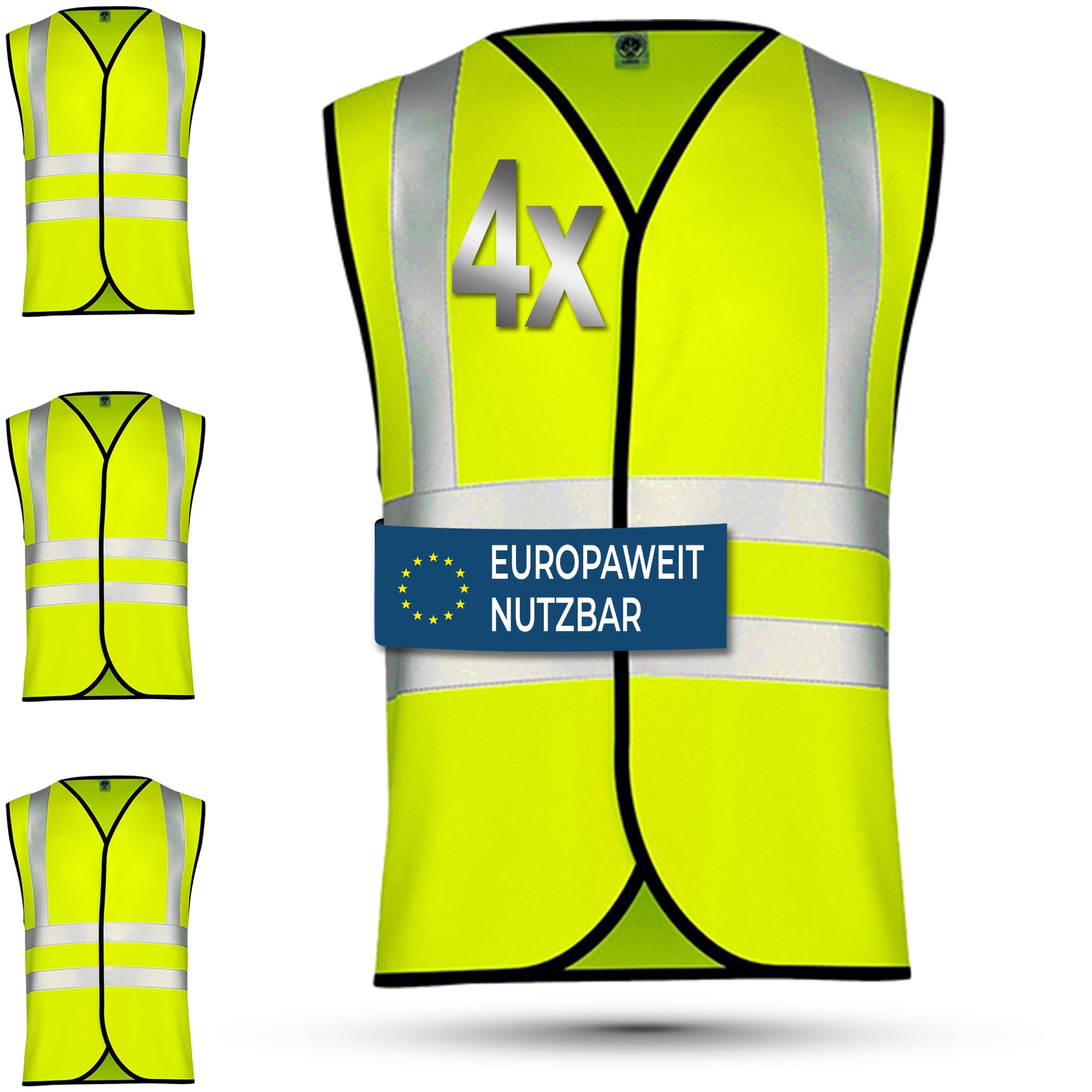 Romon Warnwesten-Set, 3-teilig - Neon-Gelb Mit Reflektoren Für Auto, Fahrrad & Arbeit