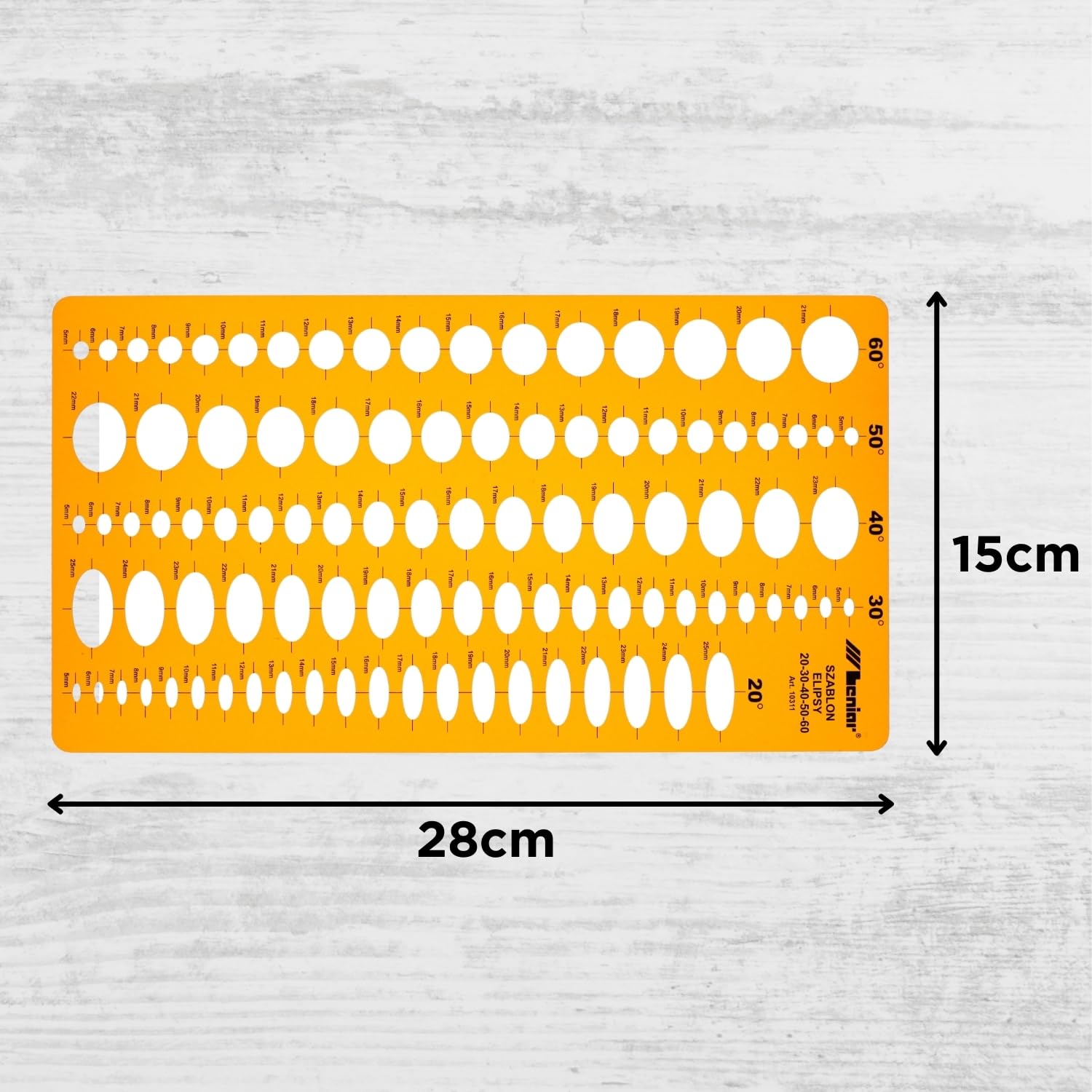 Für alle, die präzise zeichnen wollen! Dieses 3-teilige Set mit Ellipsen-Schablonen ist ein echter Alleskönner. Aus robustem, transparentem Kunststoff in knalligem Orange - da siehst du genau, was du zeichnest! Mit Zentimeter-Skala für genaue Messungen. Perfekt für Architekten, Technische Zeichner, Künstler oder Schüler. Damit kannst du super einfach Ellipsen in verschiedenen Größen zeichnen - kein Verziehen mehr! Ideal für Geometrie-Unterricht, technische Zeichnungen, Kunstprojekte oder Büroarbeiten. Die Schablonen sind ca. 26,7 x 15,2 cm groß und nur 0,1 cm dick - passt in jede Federmappe oder Schublade. Transparent mit klaren Skalen, sodass du deine Vorlage perfekt positionieren kannst. Ob für Netzwerkpläne, Bruchmessungen oder kreative Designs - damit wird jedes Zeichenprojekt zum Kinderspiel! Ein Must-Have für jeden, der präzise arbeiten will - von der Schule bis zum Profi-Büro!