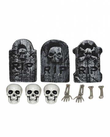 Grusele deine Nachbarn richtig! Diese 3 Halloween-Grabsteine aus robustem Harz verwandeln deinen Garten in eine gruselige Friedhofslandschaft. Mit detailreichen Skeletten, Krähen und Kürbissen - sieht schrecklich echt aus! Wasserdicht und wetterfest - kann draußen bleiben, ohne Schaden zu nehmen. In verschiedenen Größen (bis 26 cm hoch) für eine natürliche Wirkung. Perfekt für die Haustür, Terrasse oder Vorgarten. Erschafft die perfekte Grusel-Atmosphäre für deine Halloween-Party! Einfach im Boden stecken oder aufstellen. Jahr für Jahr wiederverwendbar - eine lohnende Investition für Halloween-Fans. Auch toll als Geschenk für Grusel-Liebhaber! Einfach bestellen und dein Zuhause in eine Horror-Kulisse verwandeln! Deine Gäste werden sich sicher erschrecken - versprochen!