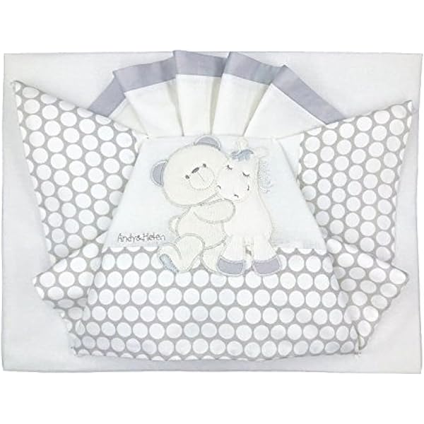 Oh wie süß! Dieses 3-teilige Bettwäsche-Set von Andy & Helen ist perfekt für dein Baby. Aus 100% Baumwolle - super weich und angenehm auf der zarten Babyhaut. Im Set ist alles dabei: ein Bettlaken mit niedlicher Stickerei in der Mitte, ein Spannbettlaken mit praktischen Gummibändern das perfekt auf der Matratze hält, und ein Kissenbezug. Das himmelblaue Design gibt dem Kinderzimmer einen frischen, modernen Look und passt zu allen anderen Bettdecken und Decken. Besonders toll: Die ganze Wäsche wird komplett in Italien aus italienischer Baumwolle hergestellt - da stimmt einfach die Qualität! Passt super für Babybetten, Kinderwagen und Babywannen. Das Oberbettlaken ist 100x50 cm groß und passt sogar auf Maxi-Kinderbetten. Einfach in der Maschine waschbar - praktisch für alle kleinen Missgeschicke. Dein Baby wird sich in diesem kuschelweichen Bettzeug rundum wohlfühlen und süß träumen!