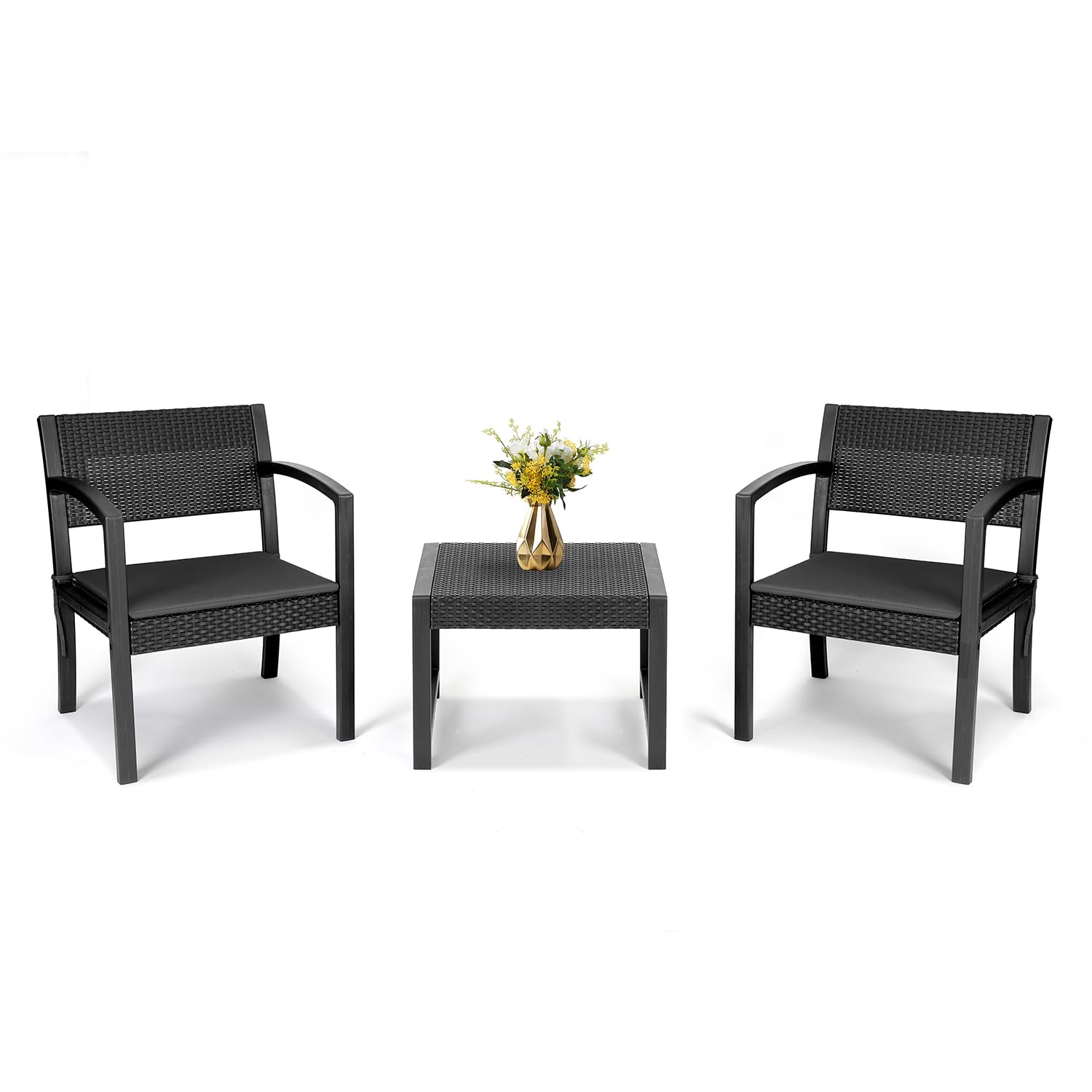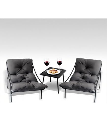 Gemütlichkeit für kleine Balkone! Dieses 3-teilige Set besteht aus 2 Sesseln und einem Beistelltisch. Mit abnehmbaren, wetterfesten Kissen in Grau. Metallgestell, Glas-Tischplatte, max. Tragkraft 150 kg pro Sessel. Ideal für Balkon, Terrasse oder Garten. Einfache Montage, platzsparend und stylisch. Genieße Sommer, Sonne und Entspannung – bestelle dein neues Lieblingsplatz!