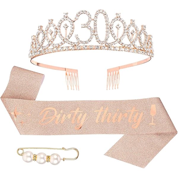 30. Geburtstag Krone & Schärpe Set - Goldene Kristall Tiara Mit 30 & Fabulous Band