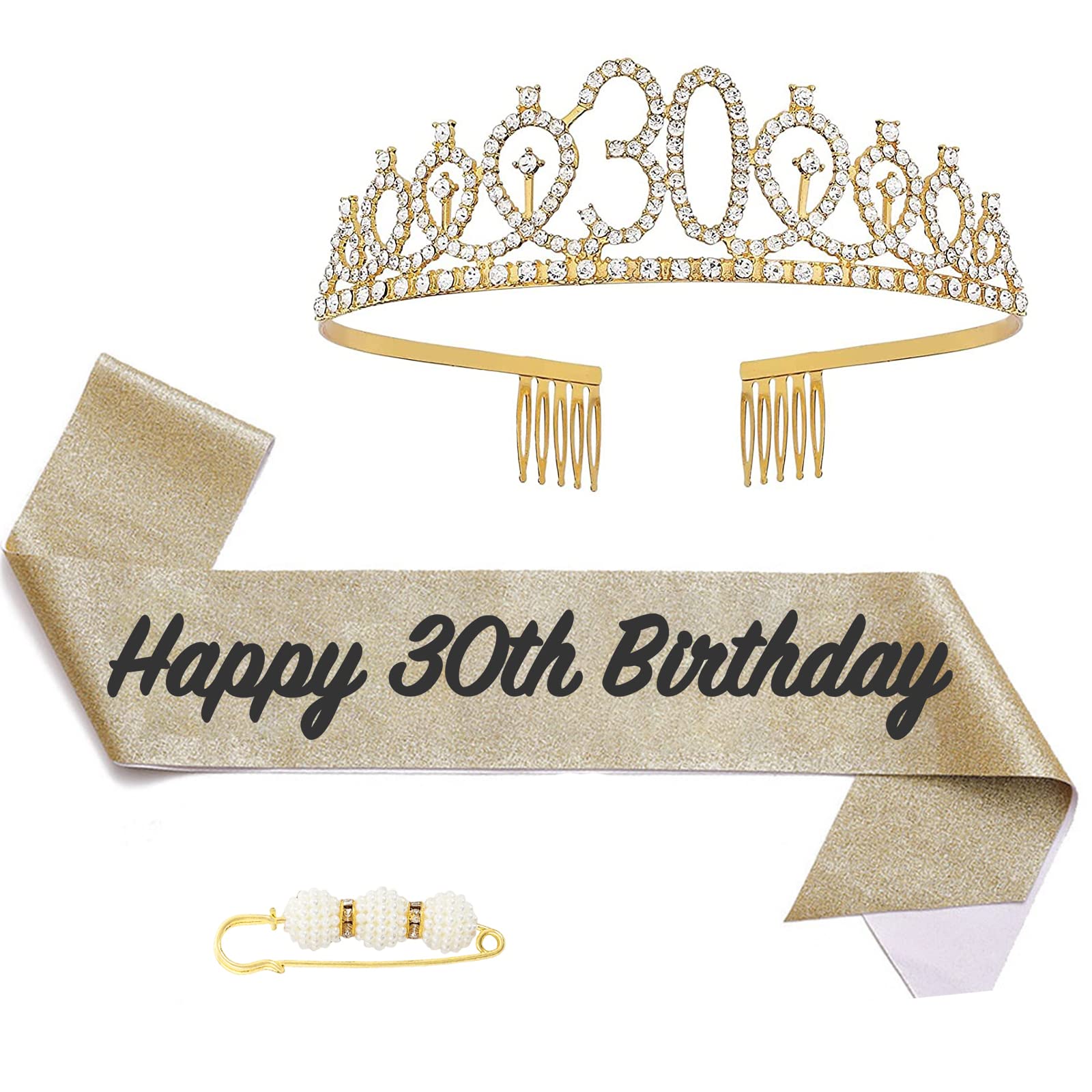 • 30. Geburtstag Krone & Schärpe Set - Goldene Kristall Tiara Mit 30 & Fabulous Band