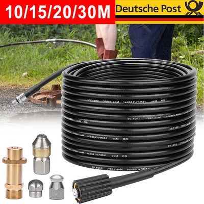 Verstopfte Abflüsse? Dieses professionelle Rohrreinigungsset macht Schluss mit ärgerlichen Verstopfungen! Mit 30 Metern robustem Schlauch und 5800 PSI Arbeitsdruck bekommst du jedes Rohr wieder frei. Das Set enthält drei spezielle Düsen: eine Eckdüse für schwierige Stellen, eine Knopfnasendüse für normale Verstopfungen und eine rotierende Düse für hartnäckige Ablagerungen. Einfach an deinen Hochdruckreiniger mit 1/4 Zoll NPT Anschluss anschließen und los geht's! Perfekt für Hausmeister, Handwerker und alle, die ihre Rohre selbst reinigen wollen. Keine teuren Klempner mehr nötig - werde dein eigener Rohrprofi!
