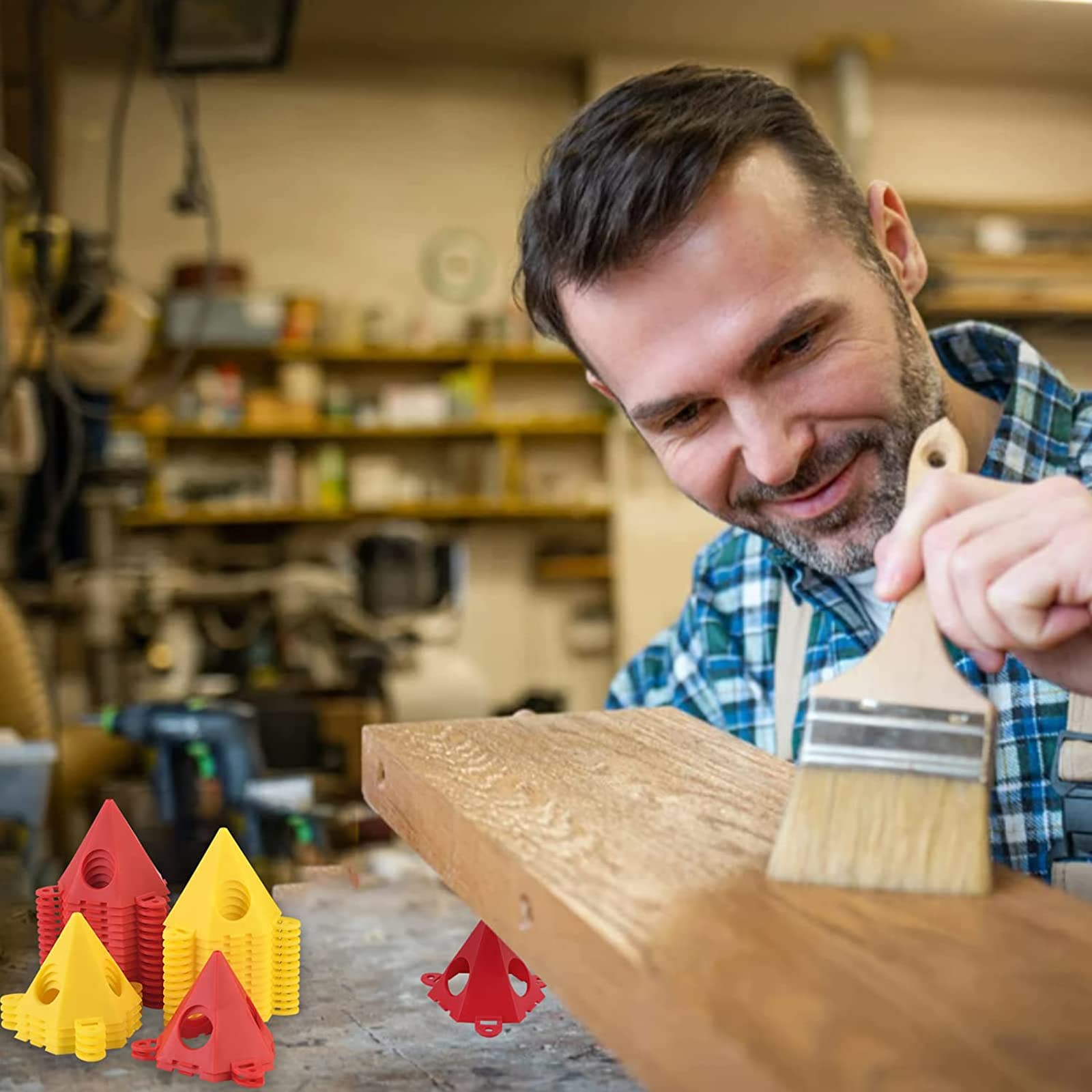 Perfekte Helfer für alle Bastel- und Malarbeiten! Diese 30 blauen Pyramidenständer aus Kunststoff sind echte Alleskönner. Mit je 5x5,5 cm Größe sind sie ideal, um Leinwände, Schranktüren oder Möbelteile beim Arbeiten stabil zu positionieren. Die dreieckige Form macht sie super standfest - nichts kippt um! Aus robustem Kunststoff gefertigt, der nicht verformt oder verschleißt. Die Oberfläche ist glatt und gratfrei, sodass deine Projekte nicht zerkratzen. Besonders praktisch: Die Ständer lassen sich platzsparend stapeln und sind leicht zu transportieren. Ob für Holzbearbeitung, Handwerksprojekte, Malerei oder Möbelmontage - diese Halterungen geben dir die nötige Stabilität. Auch für lackierte Teile ideal, da sie keine Druckstellen hinterlassen. Mit 30 Stück hast du genug für mehrere Projekte gleichzeitig oder kannst sie mit Freunden teilen. Einfach unterm Objekt platzieren und loslegen - so einfach geht's!