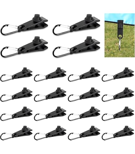 Camping-Fans, aufgepasst! Dieses 30-teilige Planenclips-Set ist der absolute Game-Changer für eure Outdoor-Abenteuer. Enthalten sind 10 coole Krokodilclips mit zahnradartigem Mund, die die Plane wirklich fest beißen. Dazu 10 elastische Bungeeseile mit Kugeln für konstante Spannung und 10 praktische Karabiner aus Aluminium. Die Montage ist super einfach - einfach den Clip an der Plane befestigen, Bungeeseil dran und mit Karabiner fixieren. Perfekt nicht nur für Zelte und Markisen, sondern auch für Planen am Wohnwagen oder sogar für Sofabezüge zu Hause. Alles aus hochwertigen Materialien: Nylon für die Clips, PP für die Seile und Alu für die Karabiner. Nie wieder ärgern über verrutschte Planen oder wackelige Zelte! Einfach praktisch und vielseitig einsetzbar.
