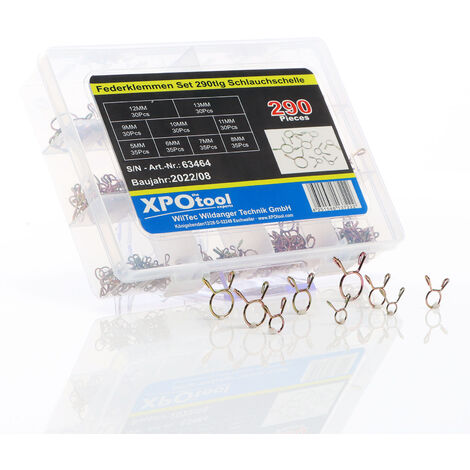Das ultimative Set für alle Schlauch- und Rohr-Arbeiten! 300 Federklemmen in 10 verschiedenen Größen von 5-18 mm - da ist für jedes Projekt die passende Klemme dabei. Aus hochwertigem Stahl mit Dacromet-Beschichtung - rostfrei und extrem langlebig. Perfekt für Kraftstoffleitungen, Wasserschläuche, Luftschläuche und vieles mehr. Inklusive praktischer Schlauchklemmen-Zange für einfache Montage. Einfach mit Schraubendreher festziehen - auch in engen Räumen kein Problem. Die Klemmen halten auch bei Druck und Vibration sicher fest. Übersichtlich in einer Plastikbox sortiert - alles griffbereit. Ob für Auto, Haushalt, Garten oder Industrie - dieses Set ist dein bester Helfer! Nie wieder undichte Verbindungen - mit diesen professionellen Klemmen!