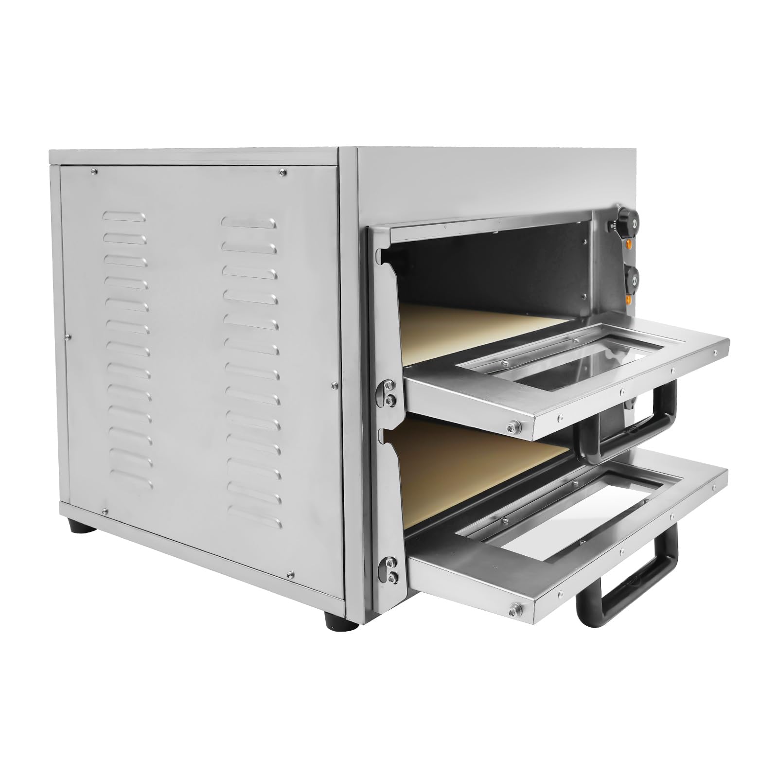 Mamma mia! Mit diesem Pizzaofen backst du Pizza wie ein Profi! 3000 Watt Power, zwei Etagen mit je 20 Liter Volumen - da passen mehrere Pizzen gleichzeitig rein. Aus Edelstahl, sieht richtig professionell aus. Temperatur von 50 bis 350°C einstellbar, Timer bis 60 Minuten. Perfekt für zu Hause, aber auch für kleine Restaurants oder Pizzerien. Einfach auf die Theorie stellen, Stecker rein und los geht's! Die Cordierit-Platten sind schon dabei - die sorgen für die perfekte Hitzeverteilung. Mit den Handschuhen (auch dabei) die Pizza sicher rausholen. Das Fenster ist hitzebeständig, du kannst also zuschauen wie deine Pizza braun wird. Für 220V Haushaltsstrom, also kein Extra-Anschluss nötig. Ob klassische Pizza, Brot oder anderes Gebäck - damit wird alles knusprig und lecker. Einfach ein Traum für alle Pizza-Fans!