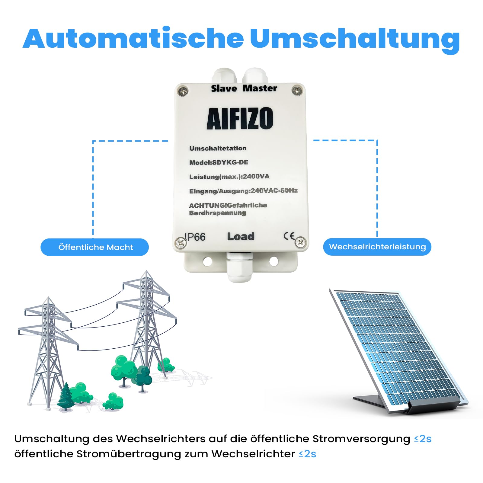 Mit TÜV und VDE Zertifizierung für maximale Sicherheit. Der IP55 Schutz hält Staub und Regen stand - ideal für den Outdoor-Einsatz. Bei Netzausfall erfolgt der Wechsel innerhalb von 2 Sekunden.