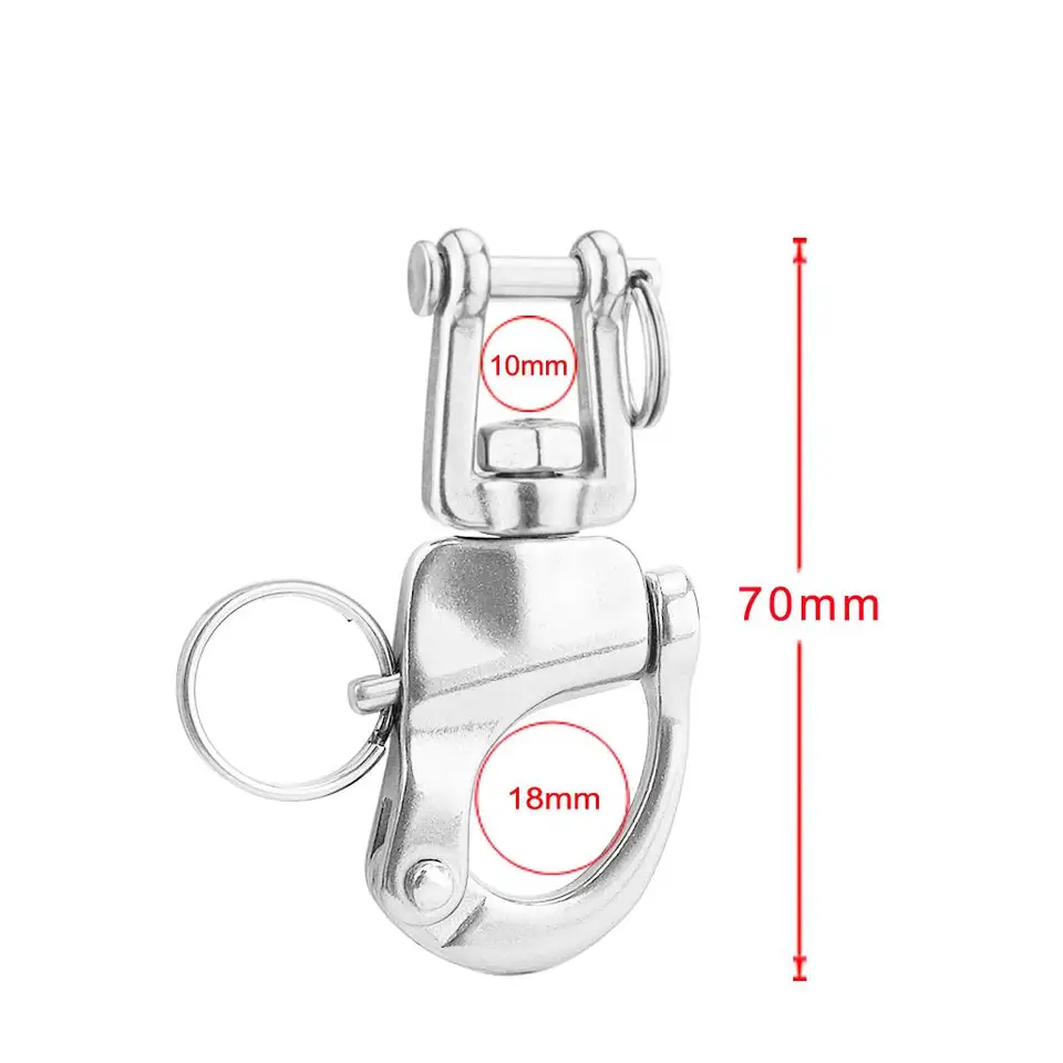Robust, korrosionsbeständig und super praktisch - dieser Schnappschäkel aus 316 Edelstahl ist ein echter Alleskönner! Mit dem drehbaren Wirbel vermeidest du verdrehte Leinen und der Schnappverschluss lässt sich auch unter Spannung leicht öffnen. Perfekt für Segelboote, Marine-Anwendungen, Hundesport (Canicross) oder Outdoor-Aktivitäten. Die 316 Edelstahl-Qualität bietet ausgezeichnete Korrosionsbeständigkeit, selbst bei salzhaltiger Luft oder Feuchtigkeit. Erhältlich in verschiedenen Größen mit unterschiedlichen Bruchlasten - von 1438 lbf bis 3664 lbf. Der sicherheitsgeschweißte Spaltring am Bolzen gibt zusätzliche Sicherheit. Ob für Takelage, Sicherungsleinen oder Ausrüstung - dieser Schäkel hält was er verspricht. Ein unverzichtbares Teil für jeden, der Wert auf Qualität und Sicherheit legt. Einfach schnappen und los geht's!