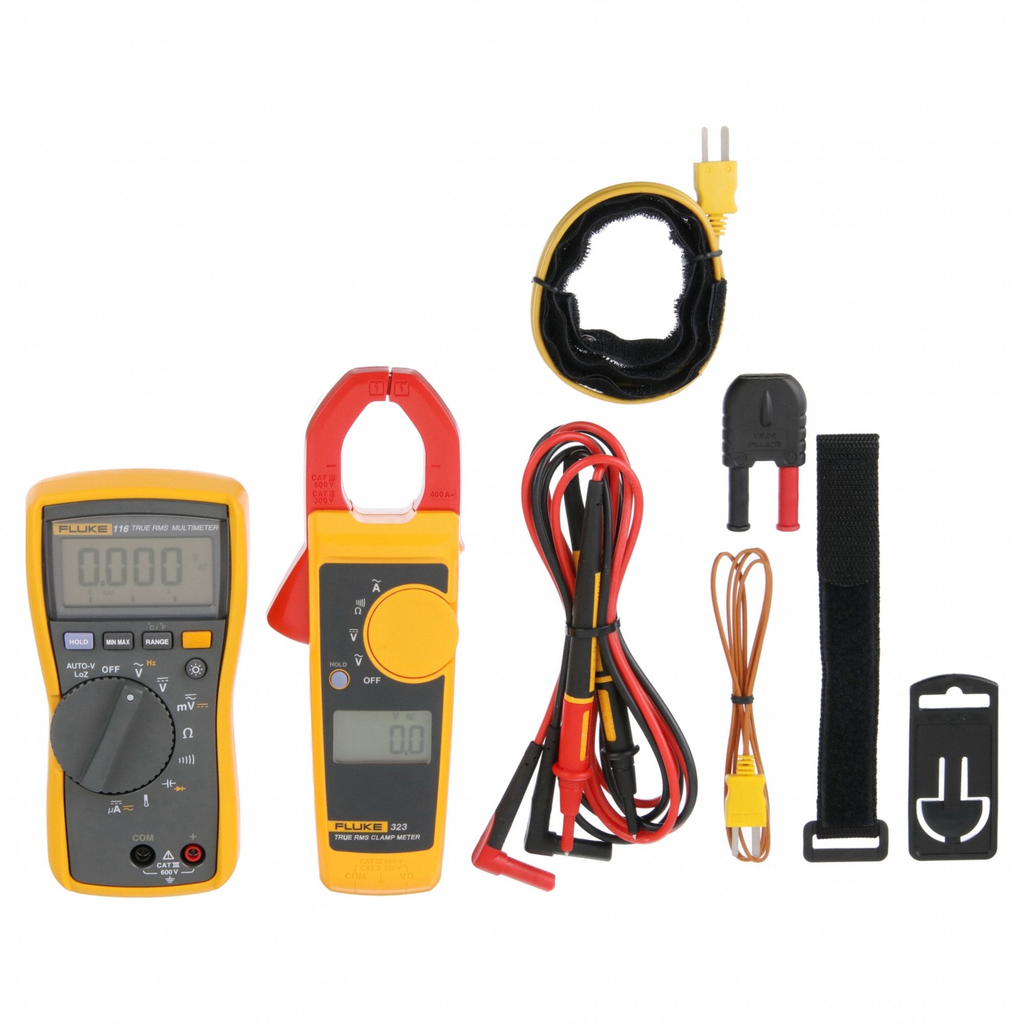 Professionelle Messtechnik vom Marktführer! Dieses Fluke 116/323 Kombi-Kit ist speziell für HLK-Techniker entwickelt. Enthält das Fluke 116 Multimeter mit integriertem Thermometer für Temperaturmessungen und die Fluke 323 True-RMS Strommesszange für präzise Strommessungen bis 400A. Das Multimeter misst Widerstand, Durchgang, Frequenz, Kapazität und sogar Mikroampere für Flammensensoren. Mit AutoV/LoZ-Funktion gegen Phantomspannungen und LED-Hintergrundbeleuchtung für dunkle Bereiche. Beide Geräte sind robust gebaut, stoßfest und nach CAT III 600V zertifiziert. Im Lieferumfang: ToolPak Aufhängung, Temperaturfühler, Tragetasche, Messleitungen und mehr. Das komplette Set für alle elektrischen Messaufgaben in der HLK-Technik - einfach unschlagbar in Qualität und Präzision!