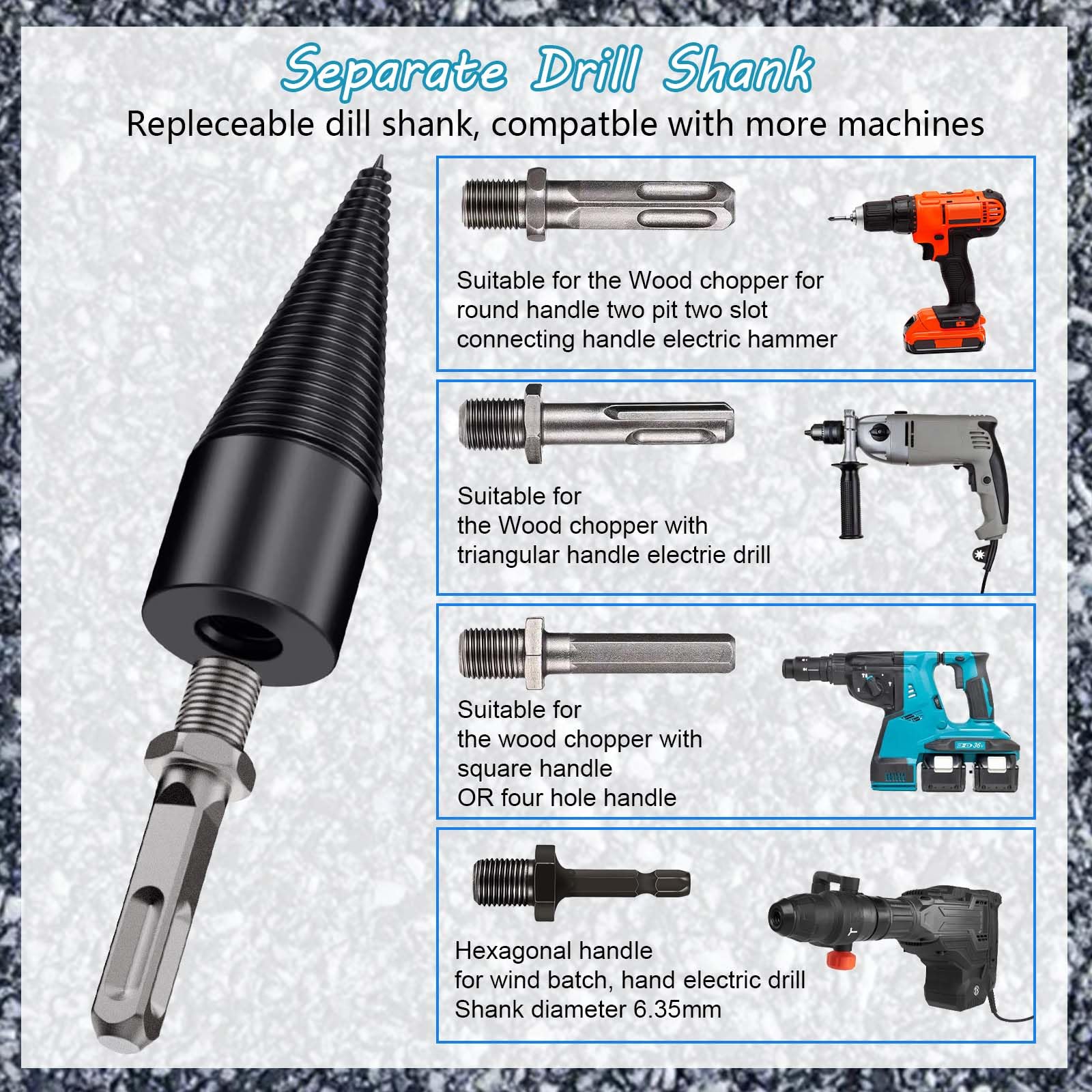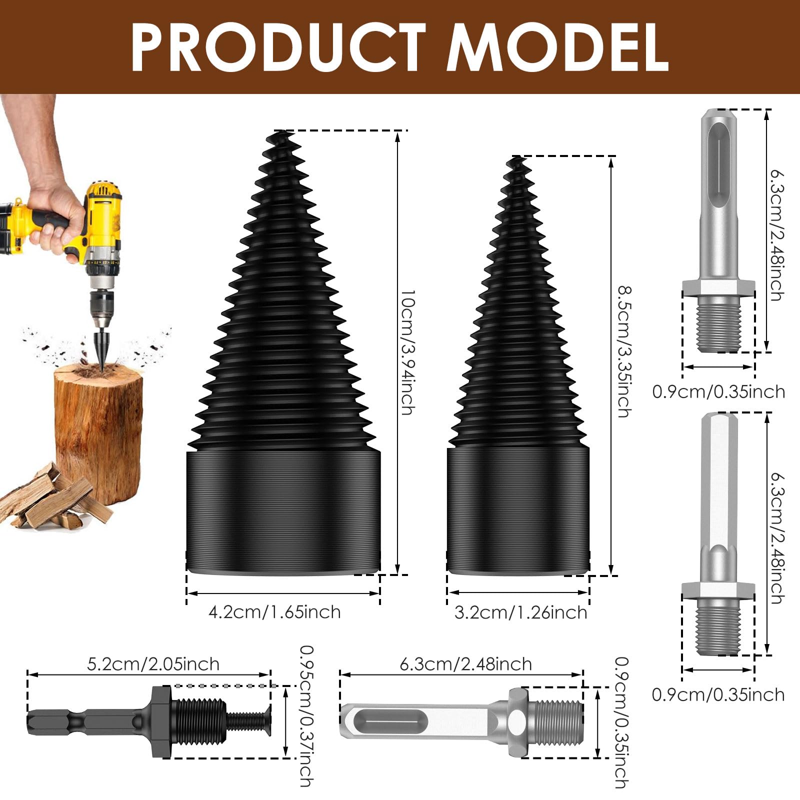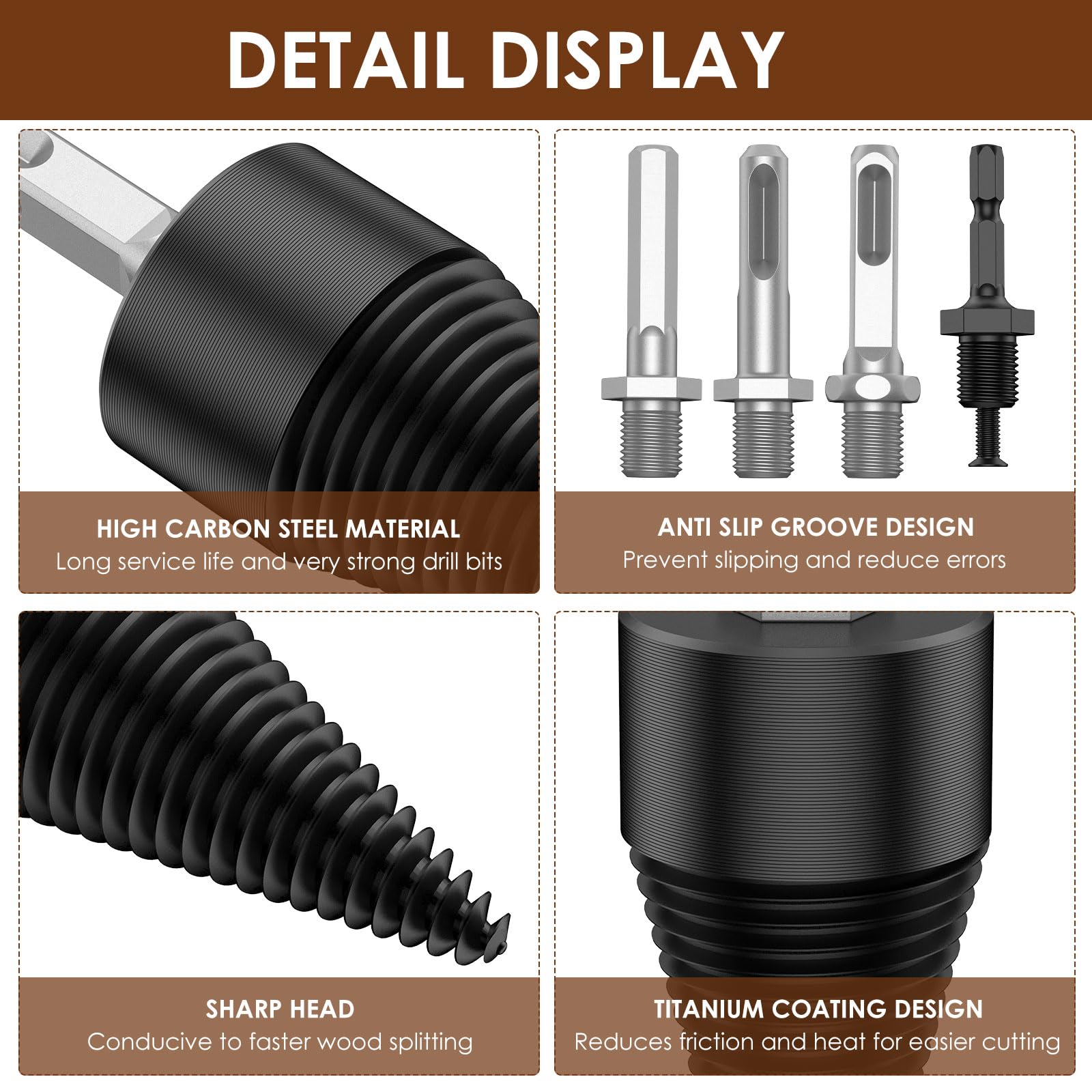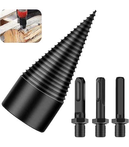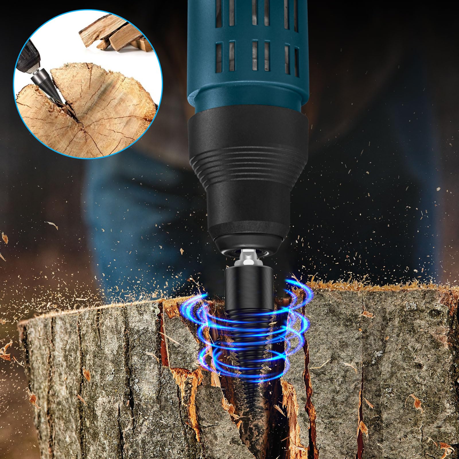 Einfacher geht Holz spalten kaum! Dieses Set mit 32mm und 42mm Holzspalter-Bohrern macht aus deiner elektrischen Bohrmaschine eine kleine Holzspaltmaschine. Aus robustem Kohlenstoffstahl gefertigt, brechen die nicht so schnell. Mit dabei sind 4 verschiedene Adaptergriffe - rund, quadratisch, sechskant und Windbatch - passen also an die meisten Bohrmaschinen. Einfach aufstecken, Holz ansetzen und los geht's! Perfekt für Eiche, Walnuss und andere mittelharte Hölzer. Nicht für extremes Hartholz geeignet, aber für den normalen Heimgebrauch absolut ausreichend. Macht die Brennholz-Bereitung viel leichter!