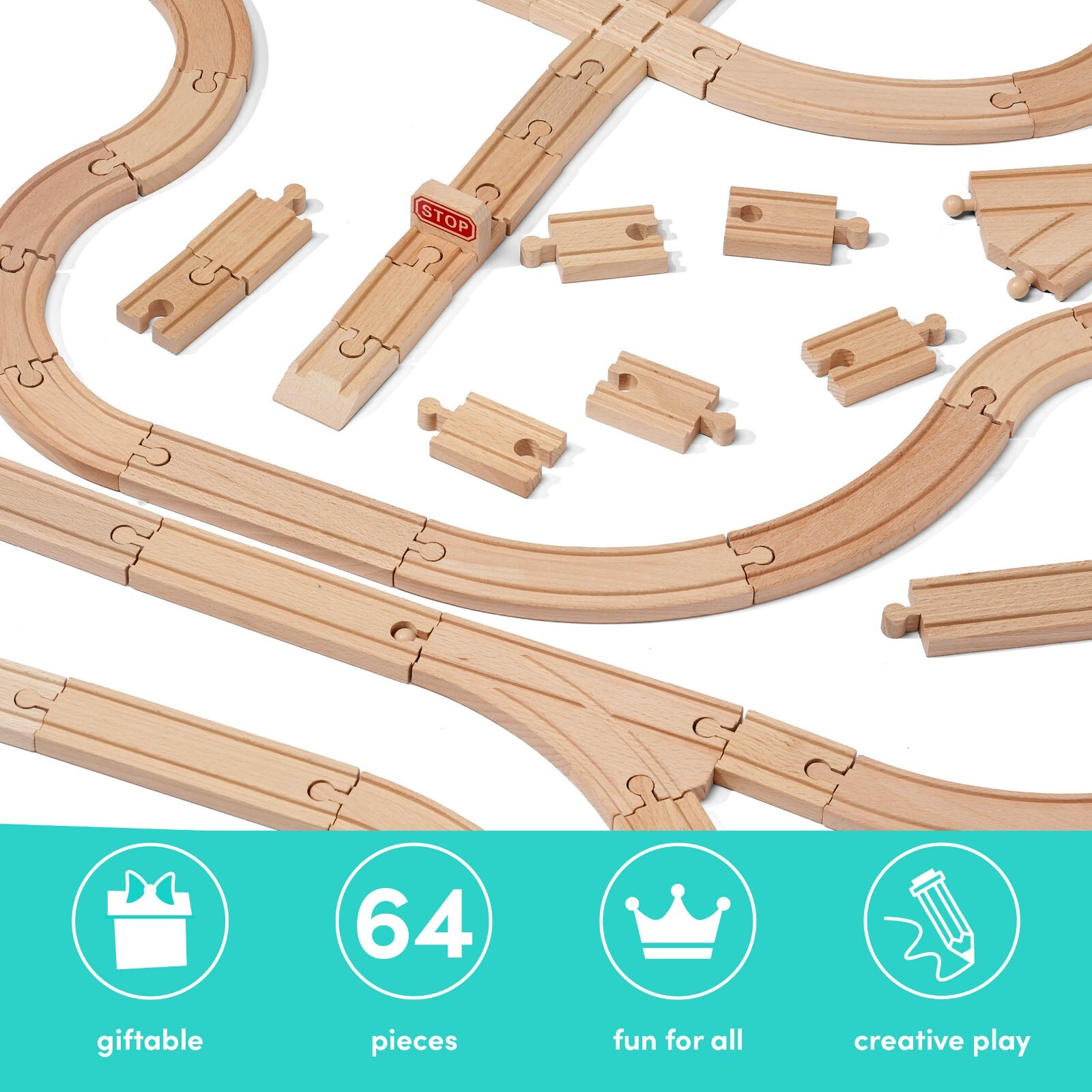 Eisenbahn-Fans aufgepasst! Dieses 33-teilige Holzeisenbahn Set bringt stundenlangen Spielspaß. Enthält alles was das Herz begehrt: 8 lange gebogene Gleise, 6 mittlere gerade Gleise, 4 lange gerade Gleise, 4 kurze gerade Gleise, 4 kurze gebogene Gleise, 2 S-Schienen, 2 Y-Weichen, 2 kurze Ausgleichsschienen und 1 Kreuzungsweiche. Aus stabilem Holz gefertigt - robust und langlebig. Die Oberfläche ist glatt und gratfrei - absolut sicher für Kinderhände. Fördert logisches Denken, Kreativität und Feinmotorik. Kompatibel mit den meisten Holzeisenbahn-Marken - erweiterbar nach Belieben. Perfektes Geschenk für Geburtstage, Weihnachten oder einfach mal so. Für Kinder ab 3 Jahren geeignet. Dein Kind kann ganze Städte bauen und immer neue Strecken planen. Mit diesem Set wird die Spielzeug-Eisenbahn zum absoluten Highlight im Kinderzimmer!