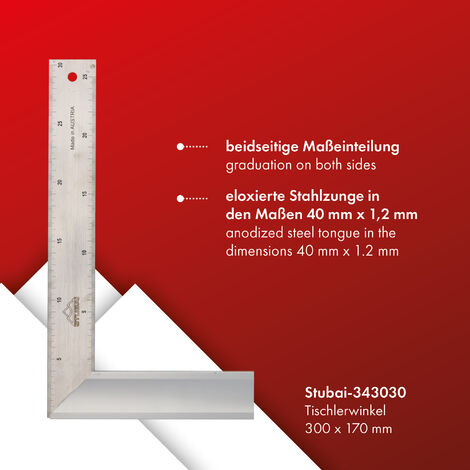 Für perfekte Winkel in der Holzwerkstatt! Dieses STUBAI Gehrmaß ist ein echter Profi-Begleiter. Mit 330mm Länge und der blanken Federstahlschiene liefert es ultra-präzise Messergebnisse für Gehrungsschnitte, Rahmenbau oder Möbelherstellung. Die robusten Nussholzschenkel fühlen sich nicht nur edel an, sondern garantieren auch maximale Stabilität. Der Messingbeschlag an den Ecken verlängert die Lebensdauer zusätzlich. Mit 36mm Schenkelbreite liegt es perfekt in der Hand und gleitet smooth über das Holz. Ob du ein professioneller Tischler bist oder ambitionierter Hobby-Handwerker - dieses Gehrmaß wird dein neuer Liebling in der Werkstatt! Deutsche Qualität die sich lohnt, für exakte Messungen und Markierungen bei jedem Holzprojekt.
