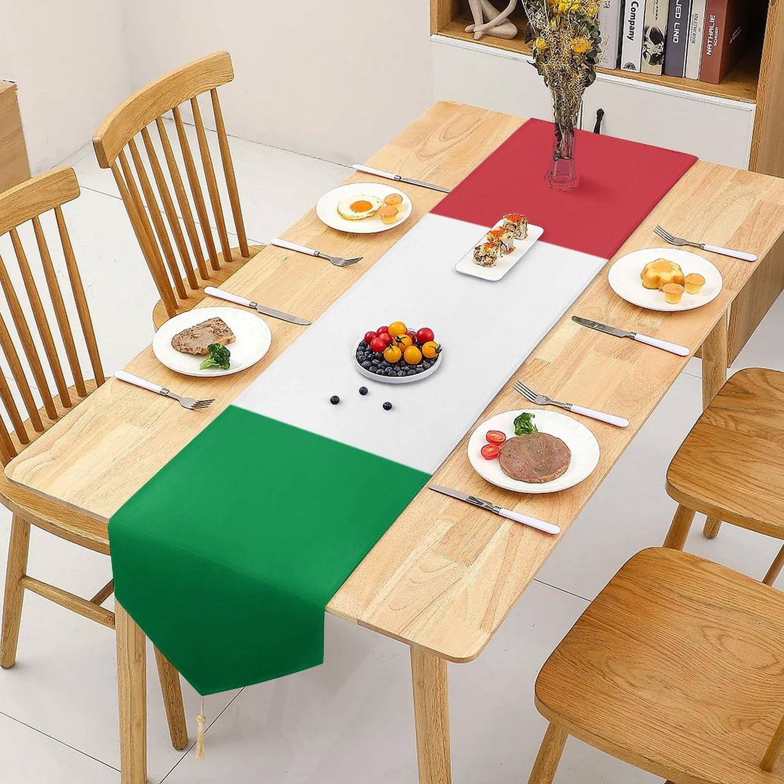 Boah, dieser Tischläufer mit italienischer Flagge bringt richtig dolce vita Feeling auf deinen Tisch! Mit 33x178 cm passt der super auf Esstische, Küchentische oder auch Gartenmöbel. Aus strapazierfähigem Baumwollleinen - schützt deine Möbel vor heißen Töpfen, Kratzern und sieht dabei noch mega stylisch aus. Perfekt für den täglichen Gebrauch oder besondere Anlässe wie Partys, Feiertage oder einfach wenn du mal Urlaubsstimmung Zuhause brauchst. Der Tischläufer ist leicht, lässt sich kompakt zusammenfalten und ist super vielseitig einsetzbar - ob drinnen oder draußen, für Frühstück, Mittag- oder Abendessen. Mit dem coolen italienischen Design und dem schönen Quastenrand sieht das einfach richtig authentisch aus. Auch ein super Geschenk für Einzugspartys oder für alle Italien-Fans!