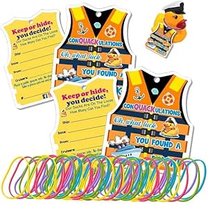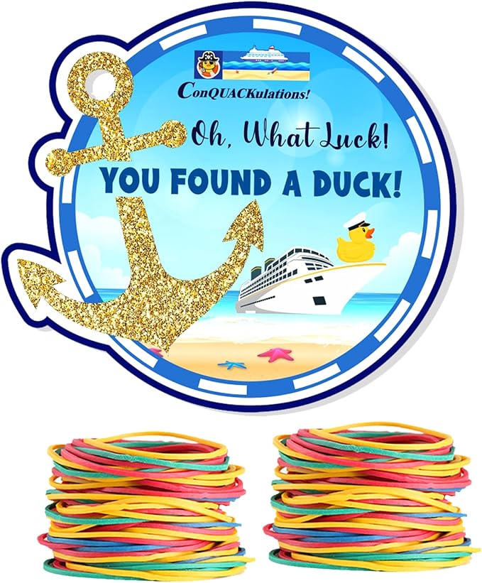 Mitspielen beim weltweiten Cruising Duck Game! Mit diesen 35 Duck Tags verbreitest du Glück und Freude auf Kreuzfahrten! Einfach deine Infos auf die Karten schreiben, mit den beiliegenden Gummibändern an deinen Gummienten befestigen - und verstecken! Maße: 5,8 x 8,9 cm - perfekt für Standard-Gummienten! So funktioniert's: Du versteckst deine Ente auf dem Schiff, andere finden sie und tragen den Spaß weiter! Originelle Designs - urheberrechtlich geschützt! Mach mit bei dieser lustigen Tradition und bringe anderen Kreuzfahrern ein Lächeln ins Gesicht! Ob für Familien, Gruppen oder Einzelreisende - dieses Spiel verbindet Menschen auf unterhaltsame Weise! Pack deine Enten ein und werde Teil der globalen Ducking Community - es macht süchtig!