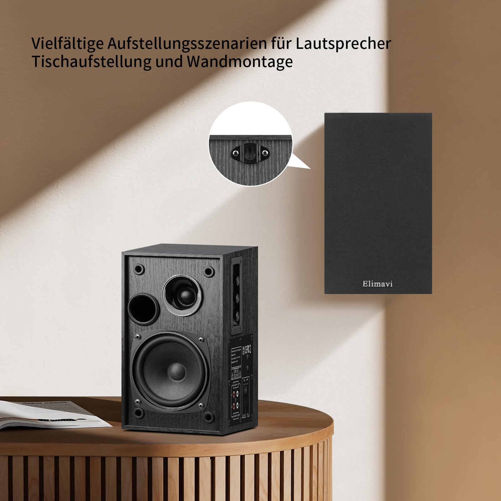 Wow, was für ein Sound! Diese Elimavi Regallautsprecher bringen hochwertigen Klang in dein Zuhause. Mit 35W RMS Leistung, 4-Zoll Woofers und 1-Zoll Tweets - da hörst du Details, die dir vorher entgangen sind. Das Holzgehäuse in Retro-Optik sieht nicht nur gut aus, es reduziert auch störende Resonanzen. Drei Regler für Lautstärke, Höhen und Bässe lassen dich den Sound genau anpassen. Perfekt für Fernseher, PC oder Plattenspieler - einfach per RCA oder 3,5mm Kabel anschließen. Wandmontage möglich - platzsparend und flexibel. Maße: 14x18x24cm - passen in jedes Bücherregal. Mit allem nötigen Zubehör inklusive. Ob fürs Wohnzimmer, Home-Office oder Studentenbude - diese Lautsprecher machen aus jeder Musik ein Erlebnis. Einfach anschließen und genießen!