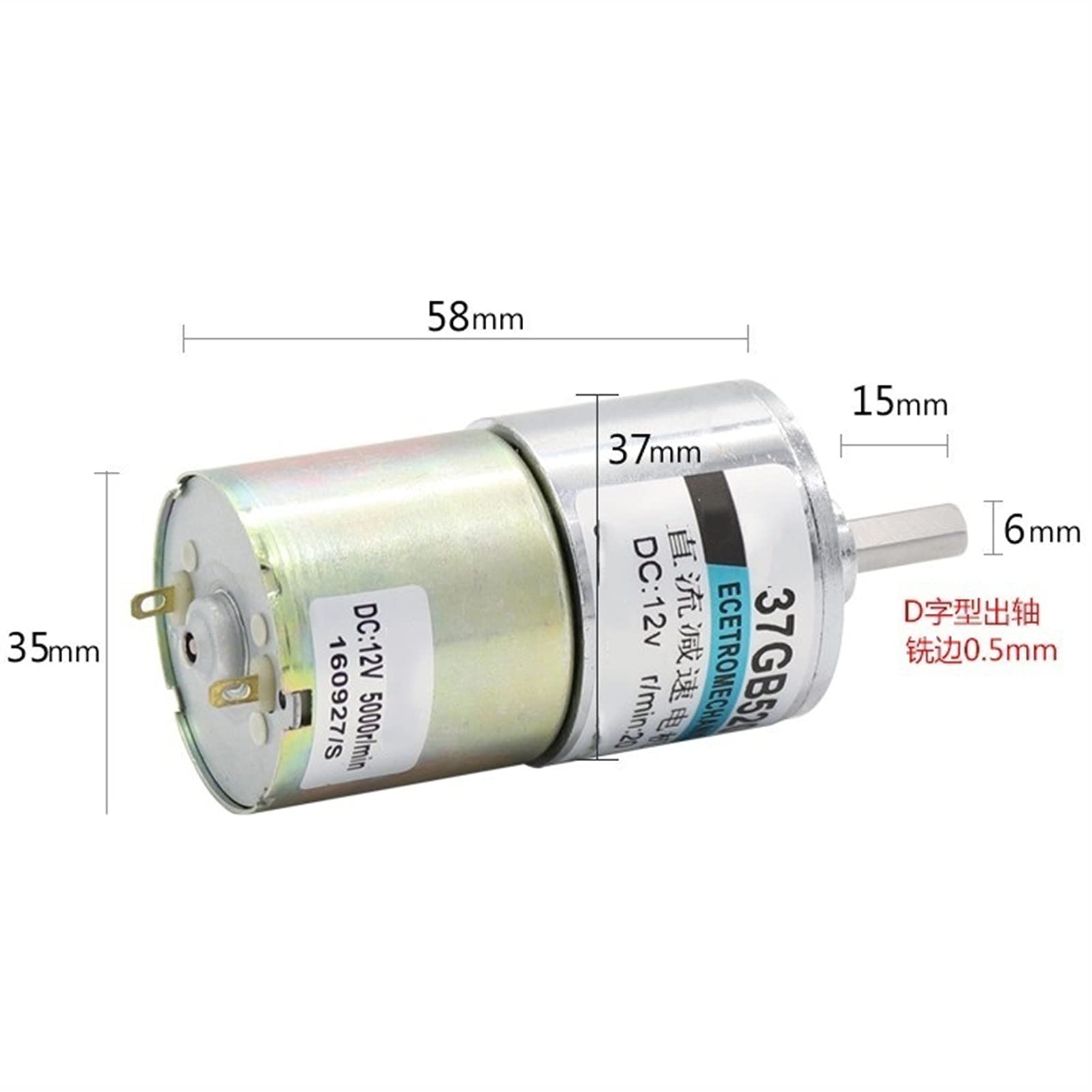 Energiewissenschaft DC Getriebemotor 37mm - 12V/24V 5-600 U/min Metallgetriebe