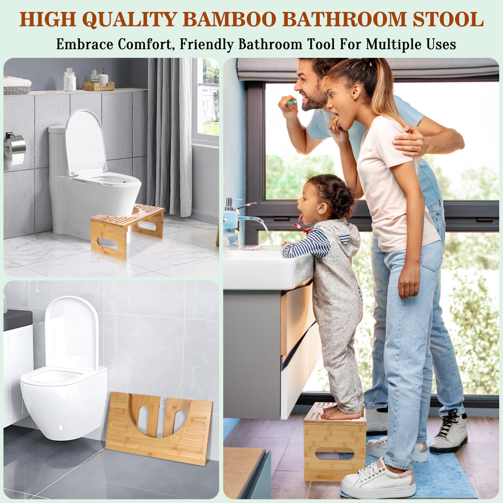 Für eine natürlicere und gesündere Sitzposition auf der Toilette! Dieser Toilettenhocker aus Bambus mit 17 cm Höhe hilft dir, in die Hockposition zu kommen, was die Darmentleerung erleichtert und Verstopfung vorbeugen kann. Die C-förmige Öffnung passt sich perfekt der Toilette an und spart Platz. Aus stabilem Bambusholz gefertigt, ist er leicht zu reinigen - einfach abwischen oder abspülen. Ideal für Erwachsene, Kinder, ältere Menschen und Schwangere. Mit rutschfesten Matten für sicheren Stand. Einfach zusammenzubauen - inklusive Schrauben und Schraubenschlüssel. Mach deinen Toilettengang angenehmer und gesünder!