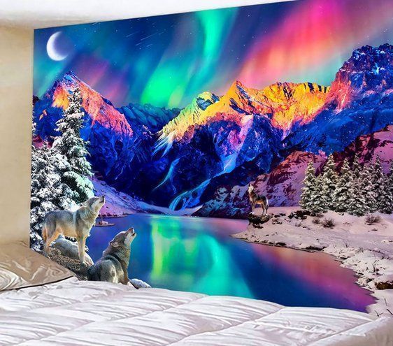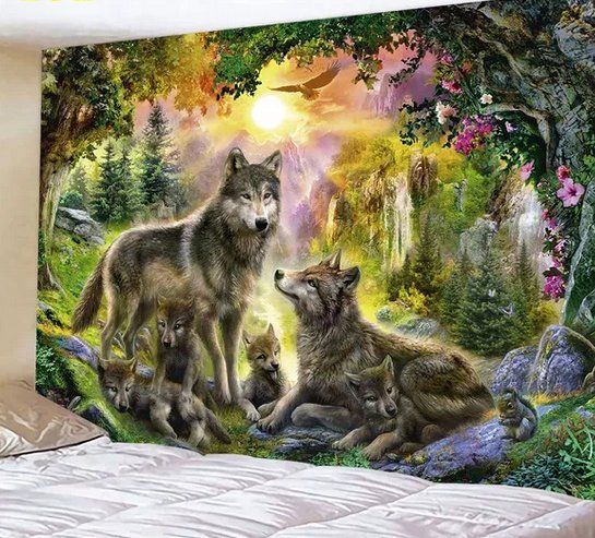 • Wolf Im Wald Wandteppich 3D - 150x200cm Polyester Wandbehang Für Wohnzimmer Dekoration