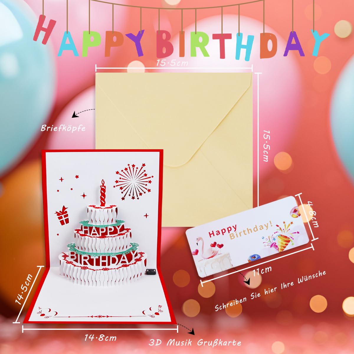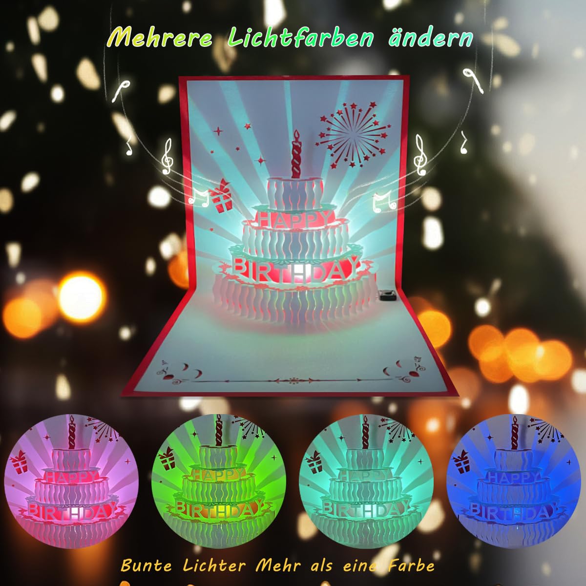 3D Pop-Up Geburtstagskarte Mit Musik & Lichtern - Lustige Torten-Karte Mit Happy Birthday Song