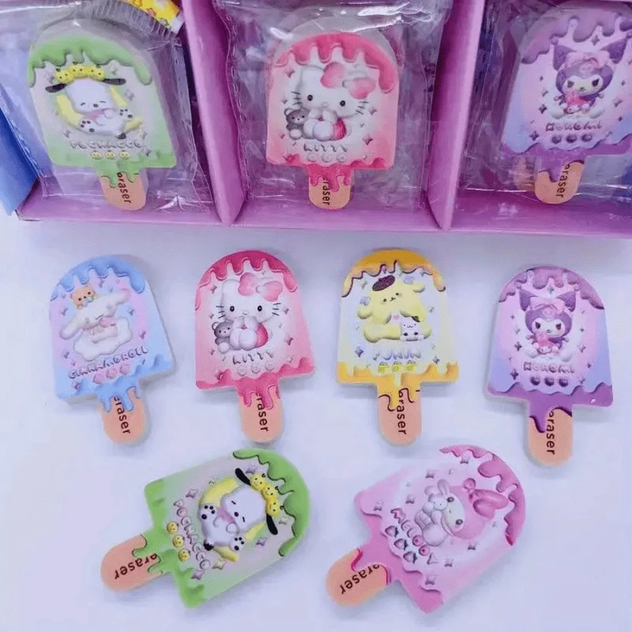 Süße Helfer für den Schulalltag! Dieses 3er Set mit Hello Kitty 3D Radiergummis begeistert alle Sanrio-Fans. Enthalten sind drei niedliche Figuren: Hello Kitty, Kuromi und Keroppi - jeder ein echter Hingucker! Die weichen Radiergummis funktionieren super beim Radieren und sehen dabei so süß aus, dass man sie fast nicht benutzen möchte. Perfekt für den Schulbedarf, aber auch als Sammlerstücke oder Deko fürs Kinderzimmer. Verpackt in einer niedlichen rosa Schachtel mit Sichtfenster - ideal als Geschenk für Geburtstage, als Mitbringsel oder zur Belohnung. Ab 3 Jahren geeignet und sicher in der Anwendung. So macht Hausaufgaben machen gleich doppelt Spaß! Die Figuren sind nicht nur praktisch, sondern auch robust und langlebig. Ein Must-Have für alle Hello Kitty Fans und alle, die ihrem Schulalltag eine Portion Kawaii-Charme verleihen wollen. Süß, praktisch und voller Spaß!