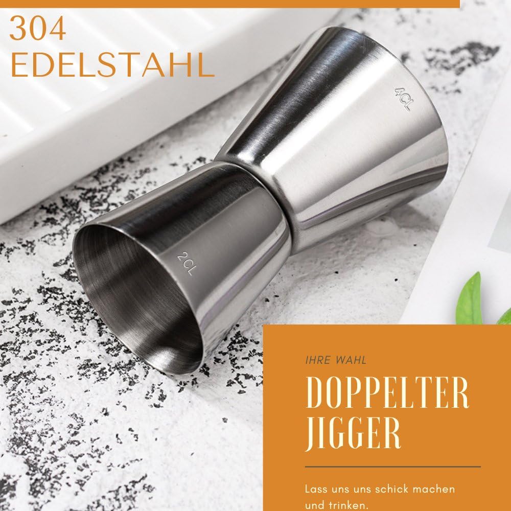 Willst du Cocktails mixen wie ein Profi? Diese Edelstahl-Messbecher sind genau das Richtige für dich! Im 2er-Set hast du immer genug Messbecher zur Hand - perfekt für Partys oder deine Hausbar. Mit den beiden Standard-Größen 3cl und 5cl mischst du jeden Drink genau richtig ab. Aus hochwertigem Edelstahl - kein billiges Metall das rostet oder komisch schmeckt. Die Skala ist super präzise, und der Ausgießer macht das Eingießen einfach. Dazu gibt's noch einen praktischen Doppelkopf-Löffel zum Umrühren. Klein, leicht und platzsparend - ideal für unterwegs oder zu Hause. Ob für Gin Tonic, Whisky Sour oder klassische Cocktails - mit diesen Messbechern wird jedes Getränk ein Hit!