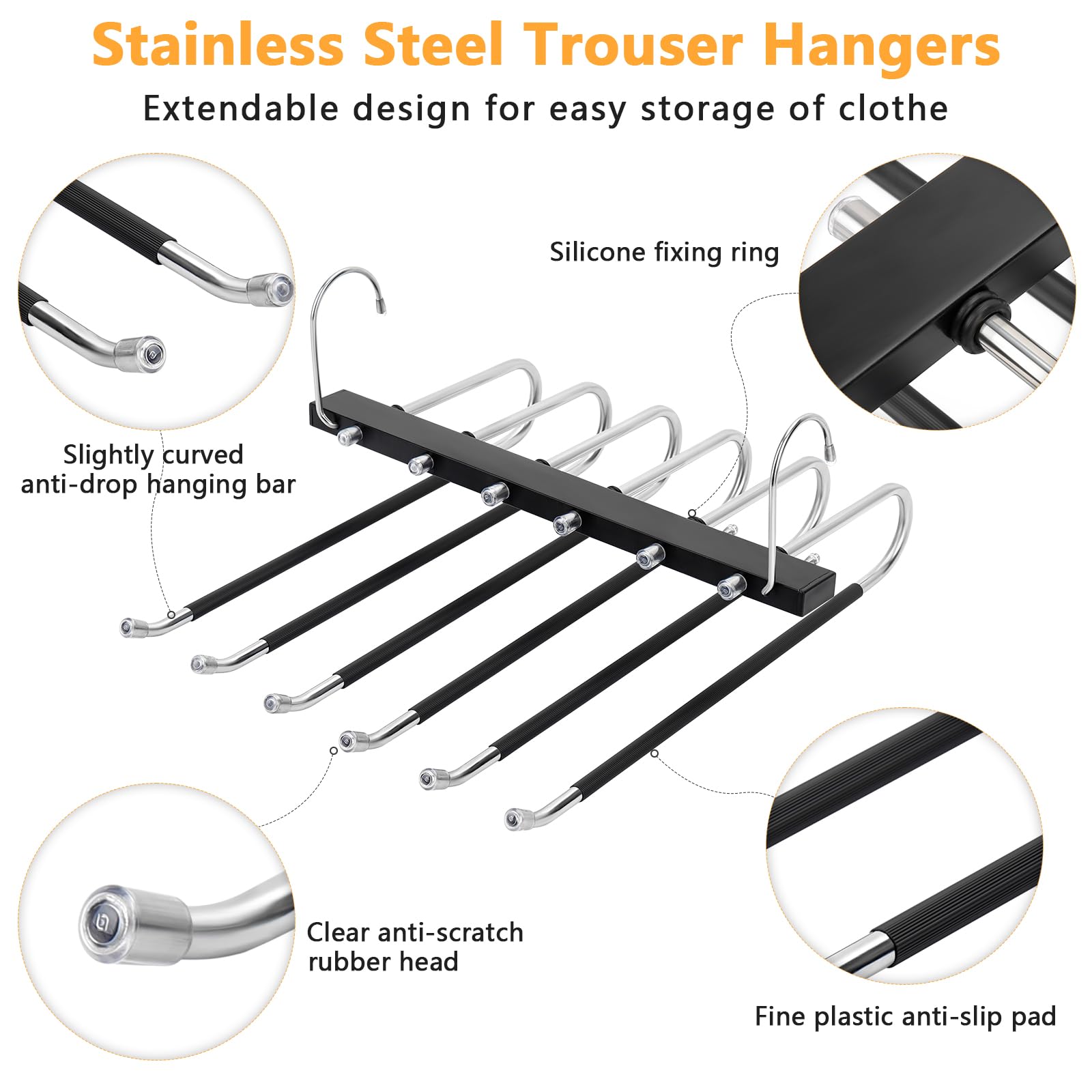 Platzprobleme im Kleiderschrank? Diese 3 faltbaren Hosenbügel aus Edelstahl schaffen Abhilfe! Jeder Bügel fasst bis zu 6 Hosen, Jeans oder Röcke - das spart bis zu 80% Platz! Super stabil dank Edelstahl und ABS-Kunststoff, selbst schwere Jeans sind kein Problem. Der Rutschschutz verhindert, dass die Kleidung runterfällt oder Knitterfalten bekommt. Einfach zusammengebaut - kein Werkzeug nötig. Und wenn du verreist: einfach zusammenklappen und mitnehmen! Perfekt auch für Schals, Krawatten oder Handtücher. Mach Ordnung in deinem Schrank - endlich alles auf einen Blick!