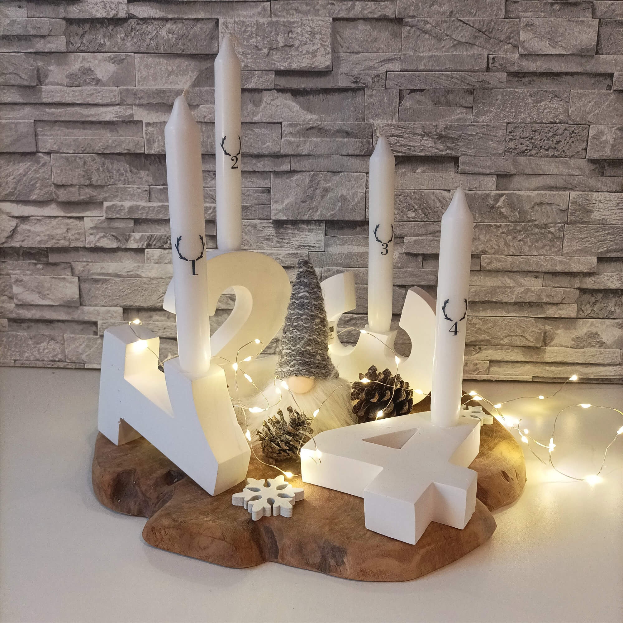 Mach dein Zuhause weihnachtlich mit diesen 4 Adventskerzenhaltern aus Holz! Die Zahlen 1-4 stehen für die vier Adventswochen - mit passenden Aufklebern zum Individualisieren. Jeder Halter ist ca. 12,5cm hoch und 3cm dick - passt für Kerzen mit 2,3cm Durchmesser. Super für den Esstisch, Kaminsims oder Eingangsbereich. Auch ohne Kerze ein hübsches Deko-Element. Einfach aufstellen und die Vorfreude auf Weihnachten genießen. Perfekt als Geschenk für Liebende - bringt festliche Stimmung in jedes Zuhause. Einfach, aber wirkungsvoll - so mag man's!