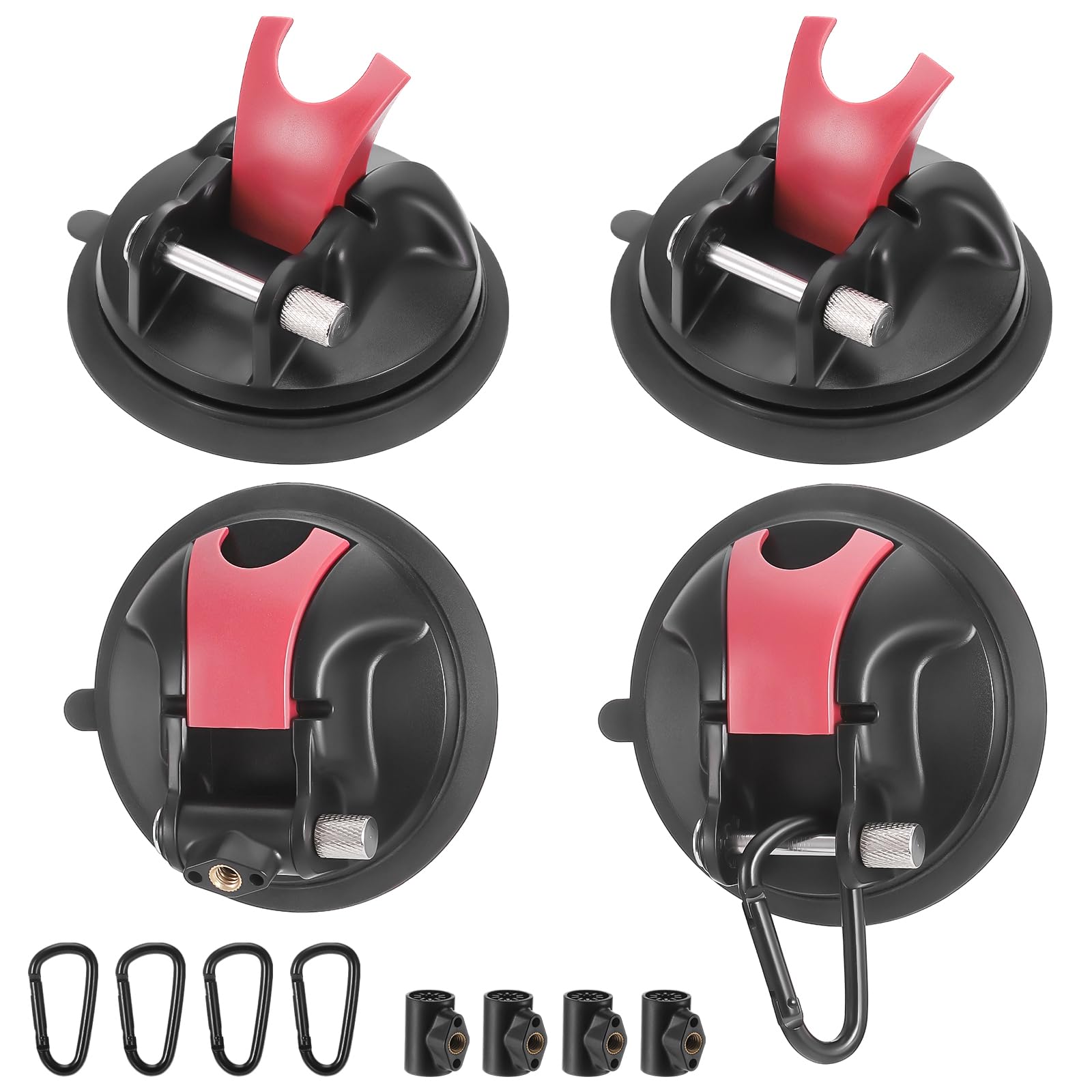 Wow - diese Saugnapf-Haken sind echte Kraftpakete! Mit satten 40 kg Tragkraft pro Saugnapf (Durchmesser 13 cm) halten sie mehr aus als die meisten herkömmlichen Modelle. Das Set enthält 4 robuste Saugnäpfe und 8 praktische S-förmige Metallhaken - alles perfekt aufeinander abgestimmt. Die Saugnäpfe haften bombenfest auf glatten Oberflächen wie Glas, Fliesen oder Metall, ganz ohne Bohren oder Kleben. Einfach draufdrücken, Luft ablassen - schon sitzt's! Perfekt fürs Camping, um Markisen zu befestigen, im Wohnmobil für praktische Aufhänge-Lösungen oder auch in Bad und Küche. Die rotschwarze Optik sieht dabei noch richtig gut aus. Und das Beste: Sie kratzen keine Oberflächen und sind im Handumdrehen wieder abgenommen. Leicht, kompakt und immer dabei - dein neues Lieblings-Outdoor-Zubehör!