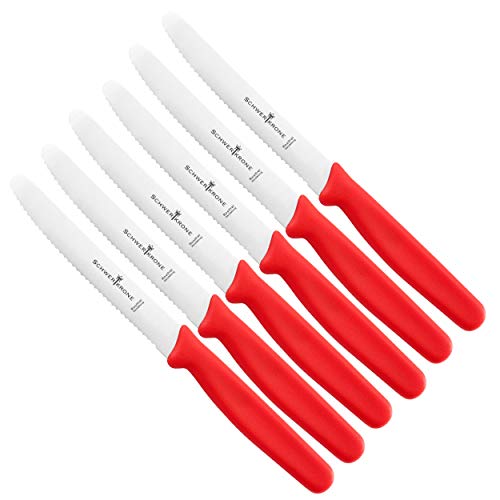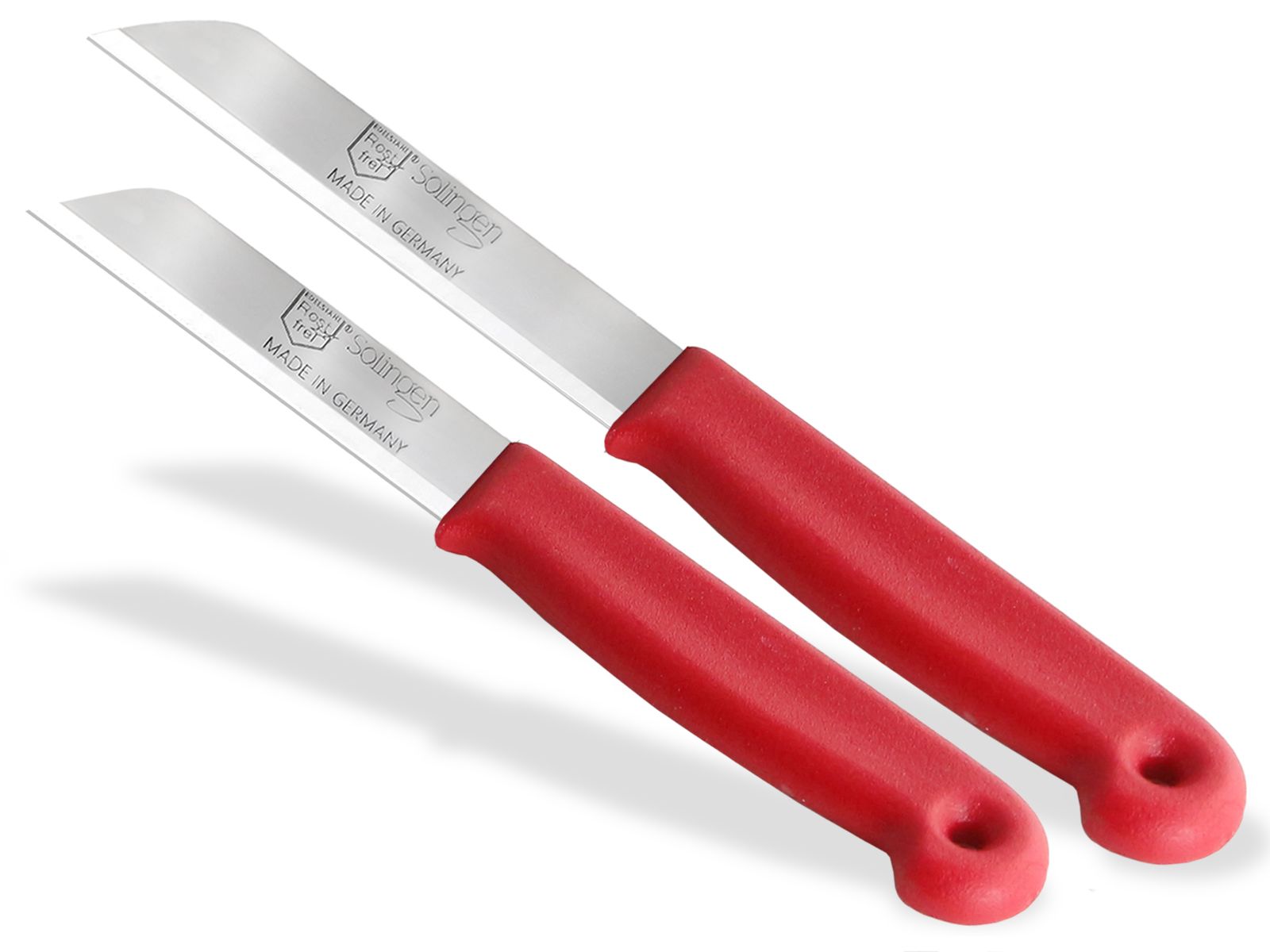 Deutsche Qualität für deine Küche! Dieses 4er Schälmesser-Set mit rotem Griff ist Made in Germany. Jedes Messer 16 cm lang, mit 6,5 cm Klinge aus rostfreiem Edelstahl - superscharf und langlebig. Perfekt für Obst, Gemüse und feine Schnitte. Liegt gut in der Hand, einfach zu reinigen. Für perfekte Schneidergebnisse jeden Tag!