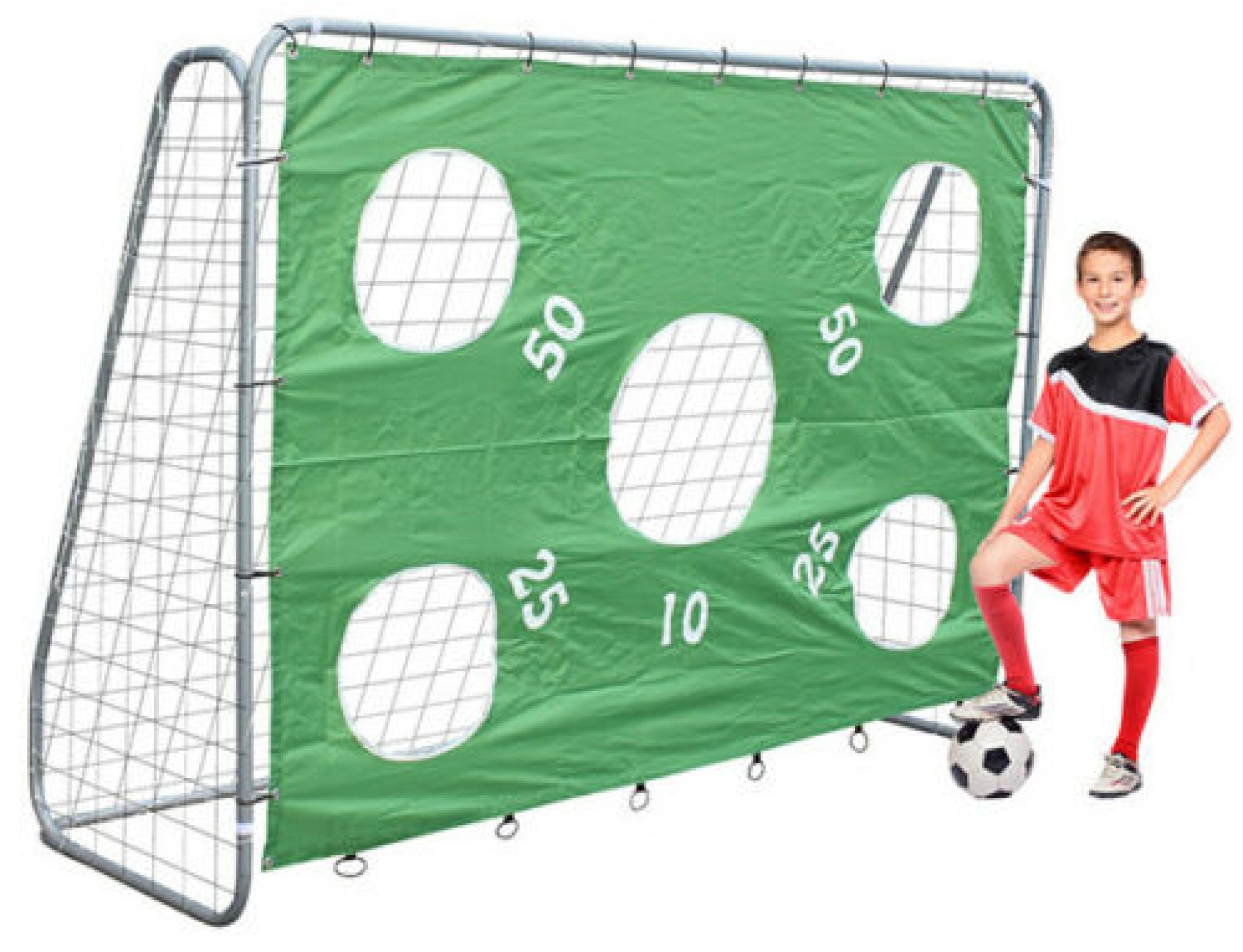 Trainiere wie die Profis! Diese robuste Torwand mit 4 Schusslöchern hilft dir, präzise in die Torecken zu schießen. Erhältlich in verschiedenen Größen - einfach im Klappmenü die passende für dein Fußballtor auswählen. Hergestellt aus wetterfestem Polyester ist sie ideal für den Einsatz im Innen- und Außenbereich. Perfekt für Kinder, um das Fußballspielen noch spaßiger zu gestalten. Inklusive allem Zubehör zum einfachen Befestigen am Tor. Ob für Fußball, Handball oder Hockey - mit dieser Torwand verbesserst du deine Treffsicherheit spielerisch. Mach aus dem Training ein Vergnügen und werde zum Torjäger!