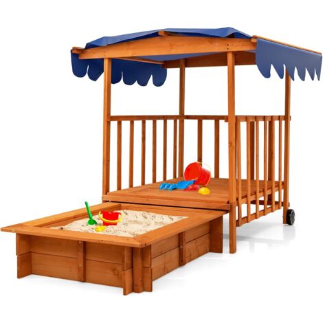 • DREAMADE Sandkasten Aus Zedernholz - 126x126cm Mit 4 Sitzbänken, Für Garten & Outdoor