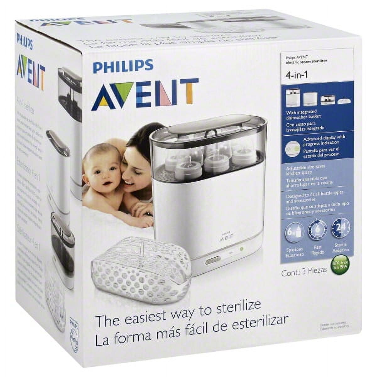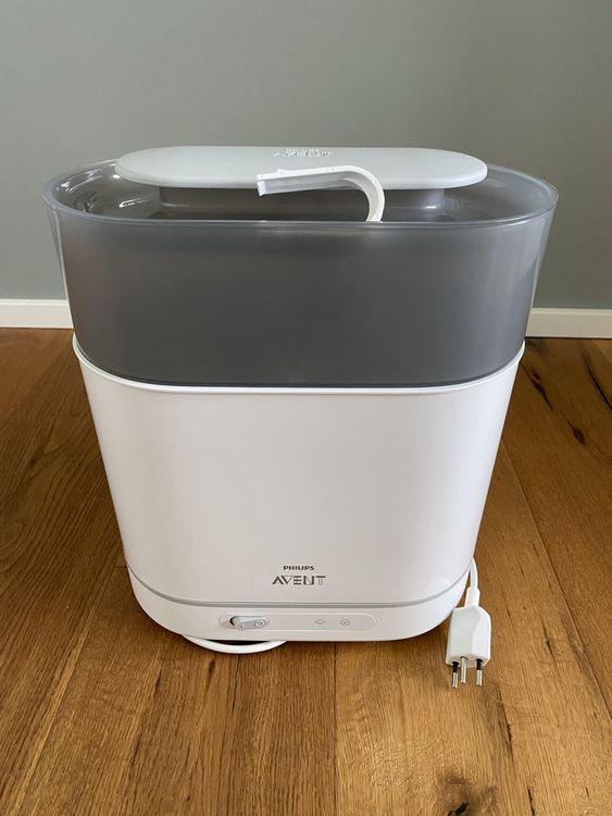 Frische Eltern aufgepasst! Dieser Philips Avent 4-in-1 Sterilisator ist ein echter Lebensretter! Er verwendet natürlichen Dampf, um 99,9% der schädlichen Keime abzutöten - komplett ohne Chemikalien! Der geniale 4-in-1 Aufbau spart Platz in der Küche und passt sich deinen Bedürfnissen an. Passt für bis zu 6 Avent-Flaschen gleichzeitig - oder für Milchpumpen, Babyzubehör und Kleinkindgeschirr! Super schnell: In nur 6 Minuten ist alles steril! Das integrierte Display zeigt dir den Fortschritt an und sagt dir, wann die Flaschen abgekühlt und sicher zu entnehmen sind. Bei geschlossenem Deckel bleibt alles bis zu 24 Stunden steril! Der praktische Spülmaschinenkorb hält kleine Teile zusammen - super praktisch! BPA-frei für maximale Sicherheit deines Babys. Einfach bedienen, leicht zu reinigen - ein Must-have für jede junge Familie!
