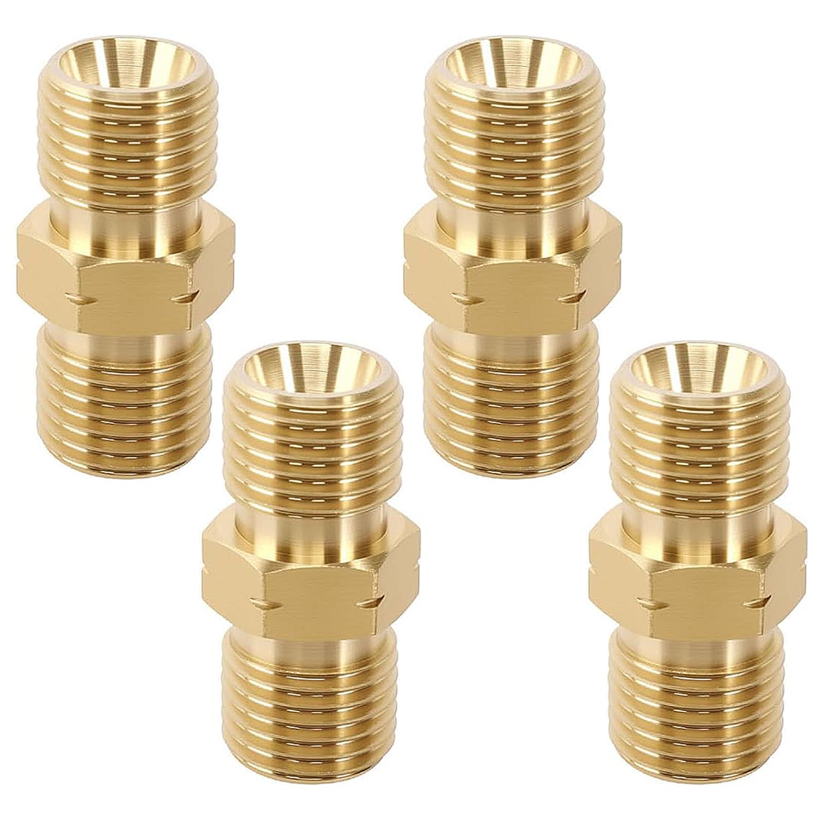 Hey, diese Gasschlauch-Verbinder sind ja mal richtig praktisch für alle, die mit Gasleitungen arbeiten! Das sind 4 Stück 1/4\ AG Doppelnippel aus massivem Messing - super stabil und langlebig.\n\nDas besondere dabei: Beide Seiten haben Linksgewinde! Also aufgepasst - das ist anders als das normale Rechtsgewinde. Aber keine Sorge, die Montage ist trotzdem super einfach. Einfach drehen und schon sitzt die Verbindung sicher und dicht.\n\nDas Messing ist temperaturbeständig, rostfrei und hält echt lange durch. Die Gewinde sind präzise verarbeitet für einen sicheren Sitz ohne Undichtigkeiten. Perfekt für Gas-, Wasser-, Öl- oder Kraftstoffleitungen.\n\nIdeal für Klimaanlagen, Solaranlagen, Zentralheizungen oder andere Installationen, wo du starke Doppelverbindungen brauchst. Die kleinen Helfer sind nur 3x1,2 cm groß, aber machen einen richtig robusten Eindruck.\n\nOb du Leitungen verlängern, reparieren oder neu installieren willst - mit diesen Messing-Verbindern bist du auf der sicheren Seite. Einfach in der Handhabung, zuverlässig in der Funktion und für viele Einsatzzwecke geeignet. Praktisch, dass gleich 4 Stück im Set sind - dann hast du immer Ersatz parat!